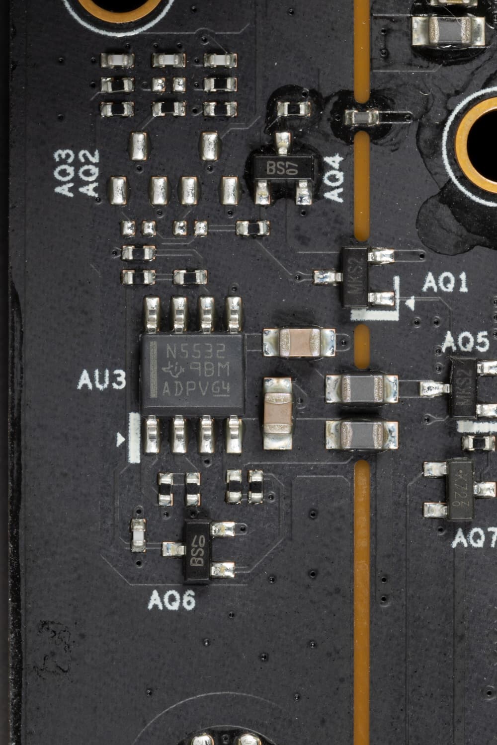 ЦАП отсутствует, а вот операционный усилитель имеется: NE5532P от Texas Instruments.