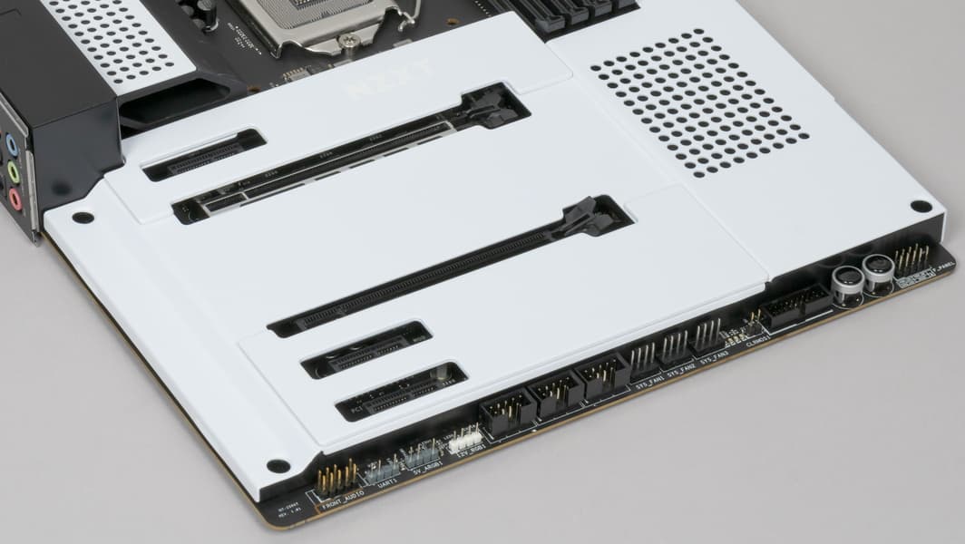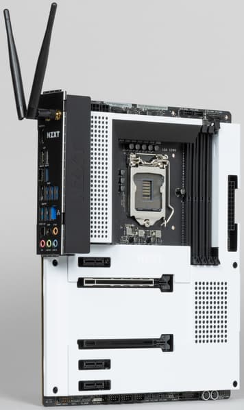 Плата NZXT N7 Z590 рассчитана на тех, кому не требуются разгон и уникальные возможности. Это, скорее, середнячок, главное достоинство которого — нетипичный стильный дизайн, сочетающийся с фирменными корпусами NZXT и их же системами охлаждения.