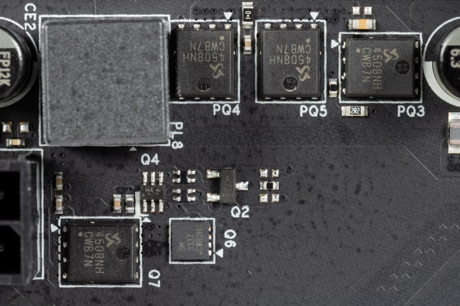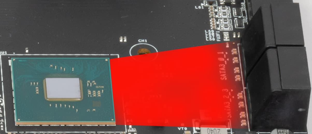 У данной платы перераспределения линий PCIe между слотами в случае использования более одной видеокарты нет,. Однако есть нужда в переключении слота М2_1 в зависимости от поколения вставленного в матплату процессора, поэтому имеются мультиплексоры.