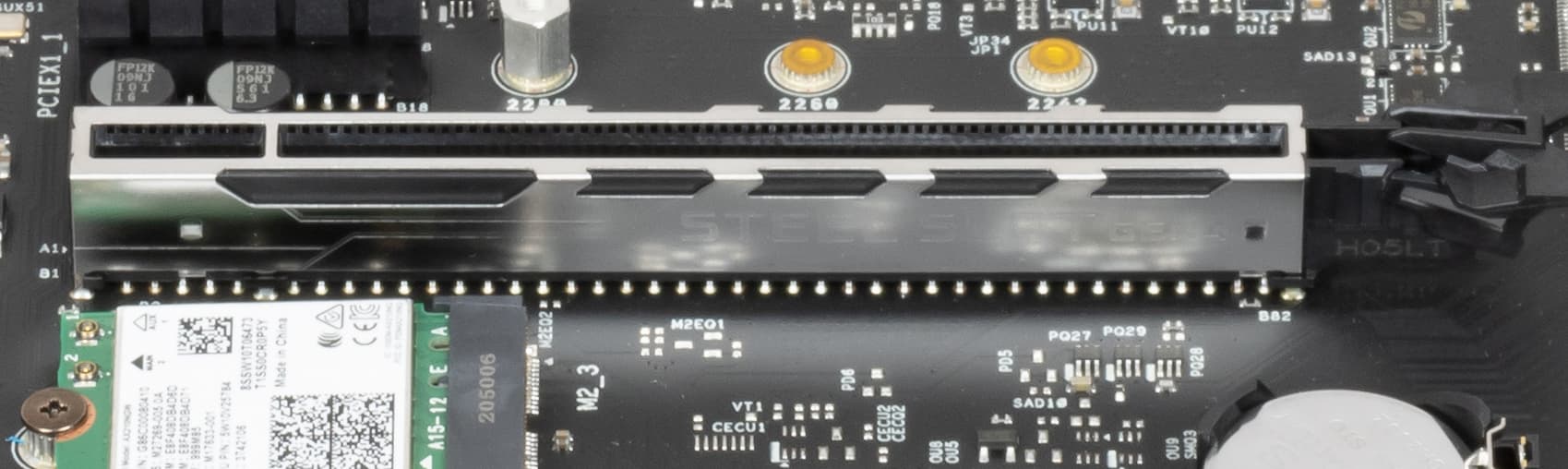 Слот PCIe x16_1 имеет металлическое армирование из нержавеющей стали, которое увеличивает надежность (что может быть важным в случае довольно частой смены видеокарт, но что более важно: такой слот легче выдержит нагрузку на изгиб в случае установки очень тяжелой видеокарты топового уровня). Кроме того, такая защита предохраняет слот от электромагнитных помех.