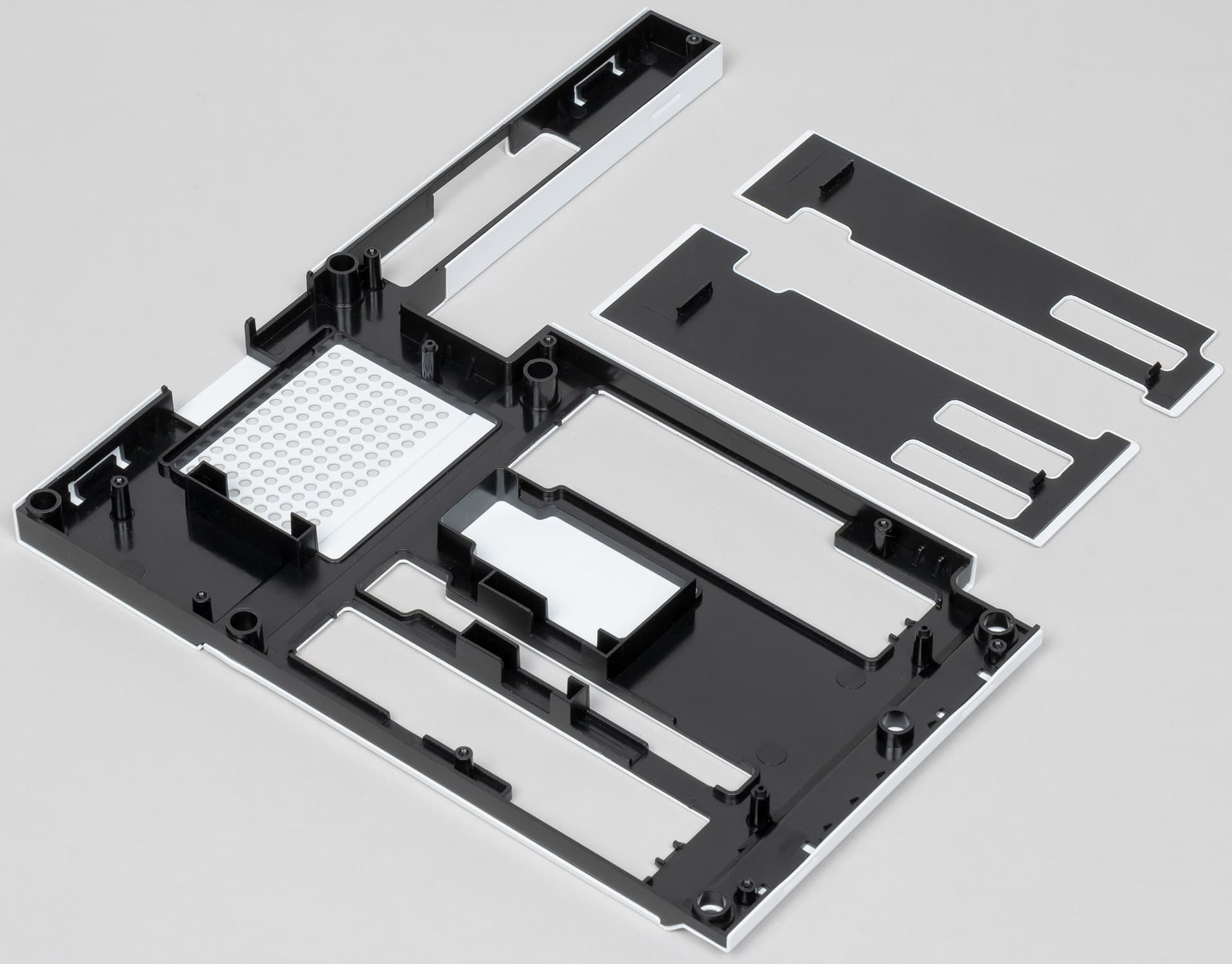 А больше половины поверхности платы покрыто декоративной белой крышкой, не несущей никакой иной функциональности, кроме как элемента дизайна.