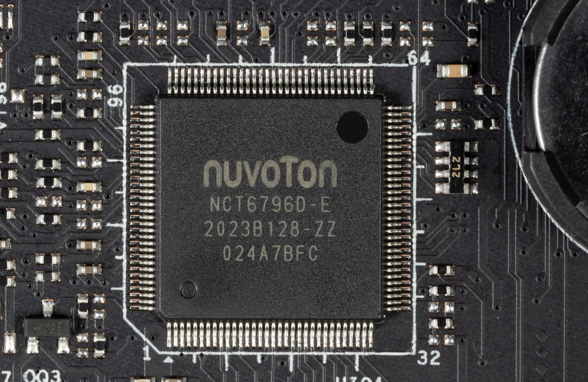 За мониторинг платы отвечают вышеупомянутый контроллер от NXP, также Nuvoton NCT6796D, который также контролирует работу всех гнезд СО, также в его ведении Multi I/O.