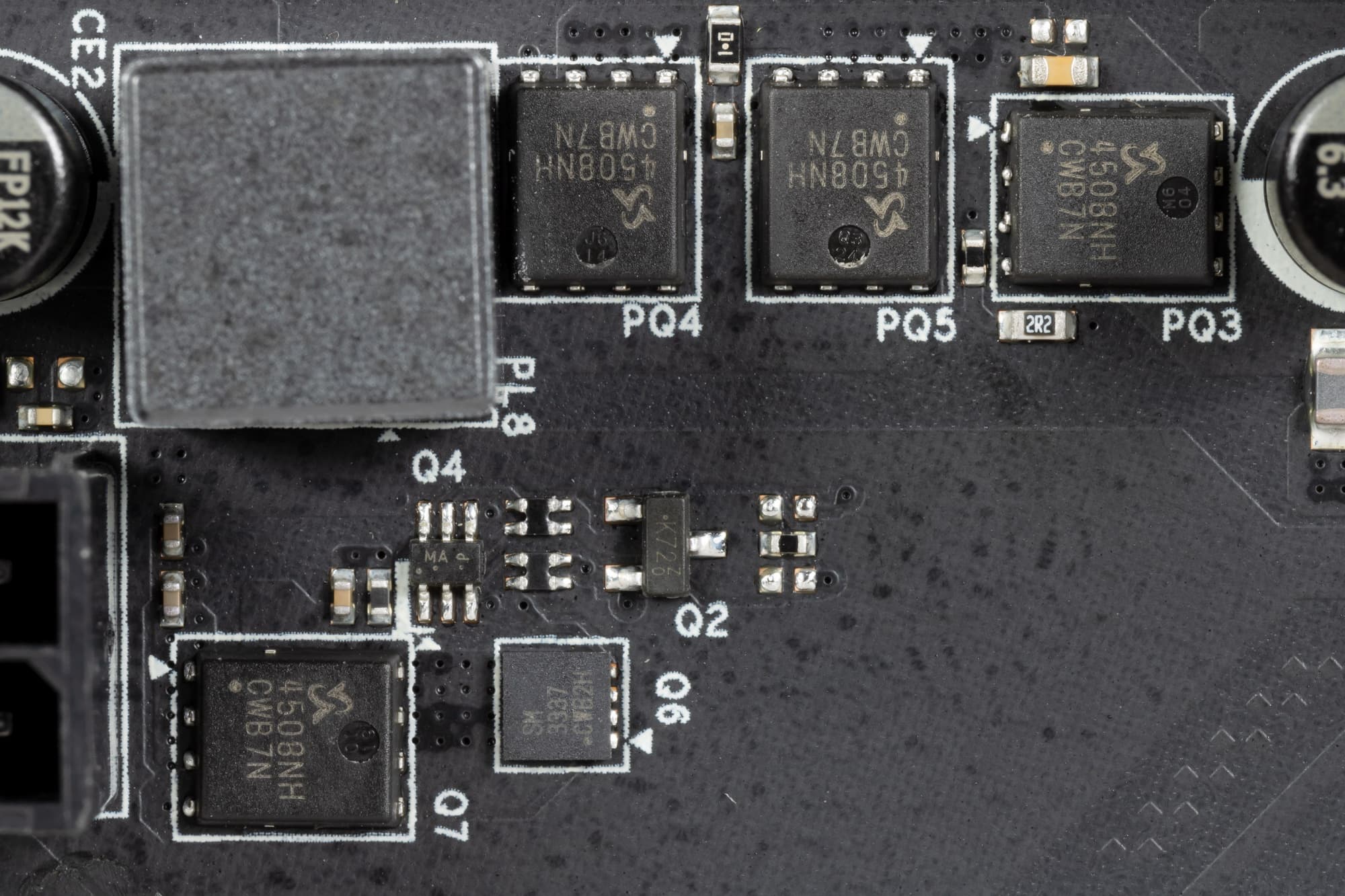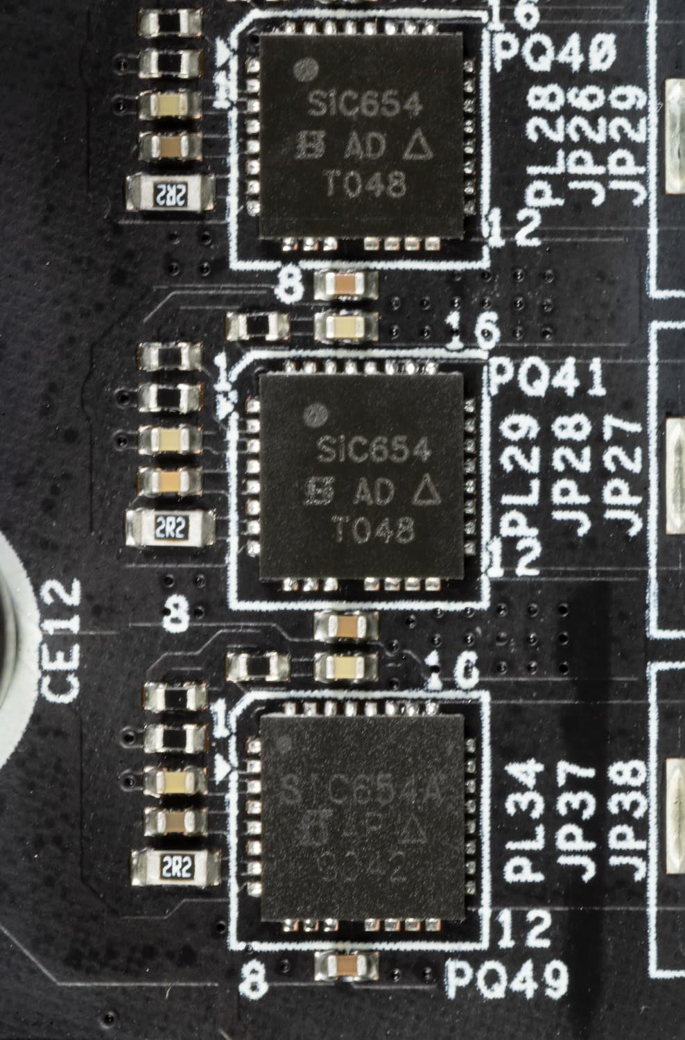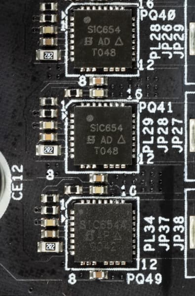 Каждый канал фазы имеет суперферритовую катушку и SiC654/654A MOSFET от Vishay на 50 А.