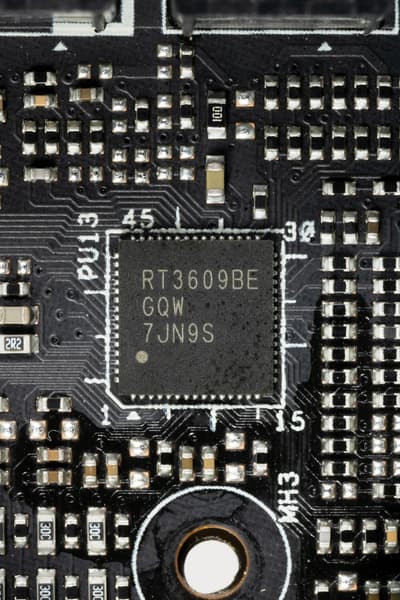 Для управления 12 фазами питания VCore используется ШИМ-контроллер RT3609BE от Richtek, и он работает с фазами по-парно (то есть по сути управляет 6-ю фазами). Он уже управляет и двумя фазами питания VCCSA.