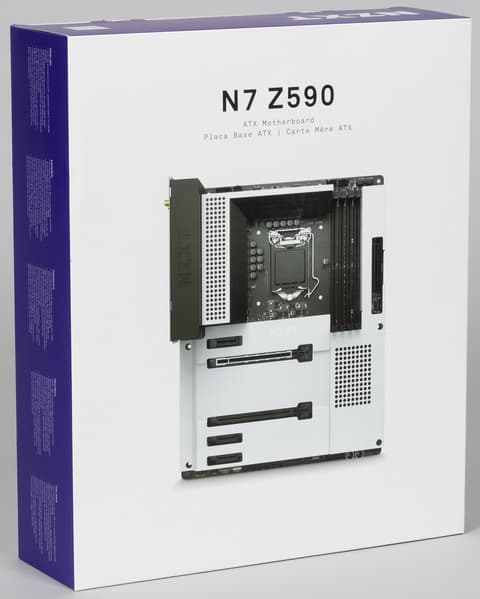 NZXT N7 Z590 поставляется в обычной картонной коробке, которая в свою очередь упакована в фирменный супер. Внутри коробки есть традиционные отсеки: для самой материнской платы, и остального комплекта.