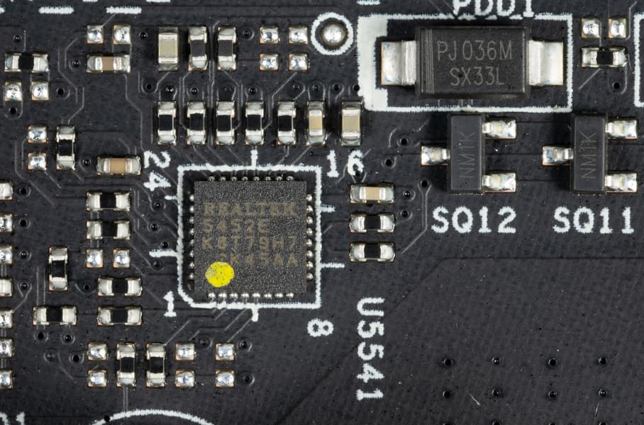 - 1 порт USB 3.2 Gen2x2: реализован с помощью контроллеров Realtek RTS 5452 и Genesys Logic GL9950 и представлен на задней панели портом Type-C;