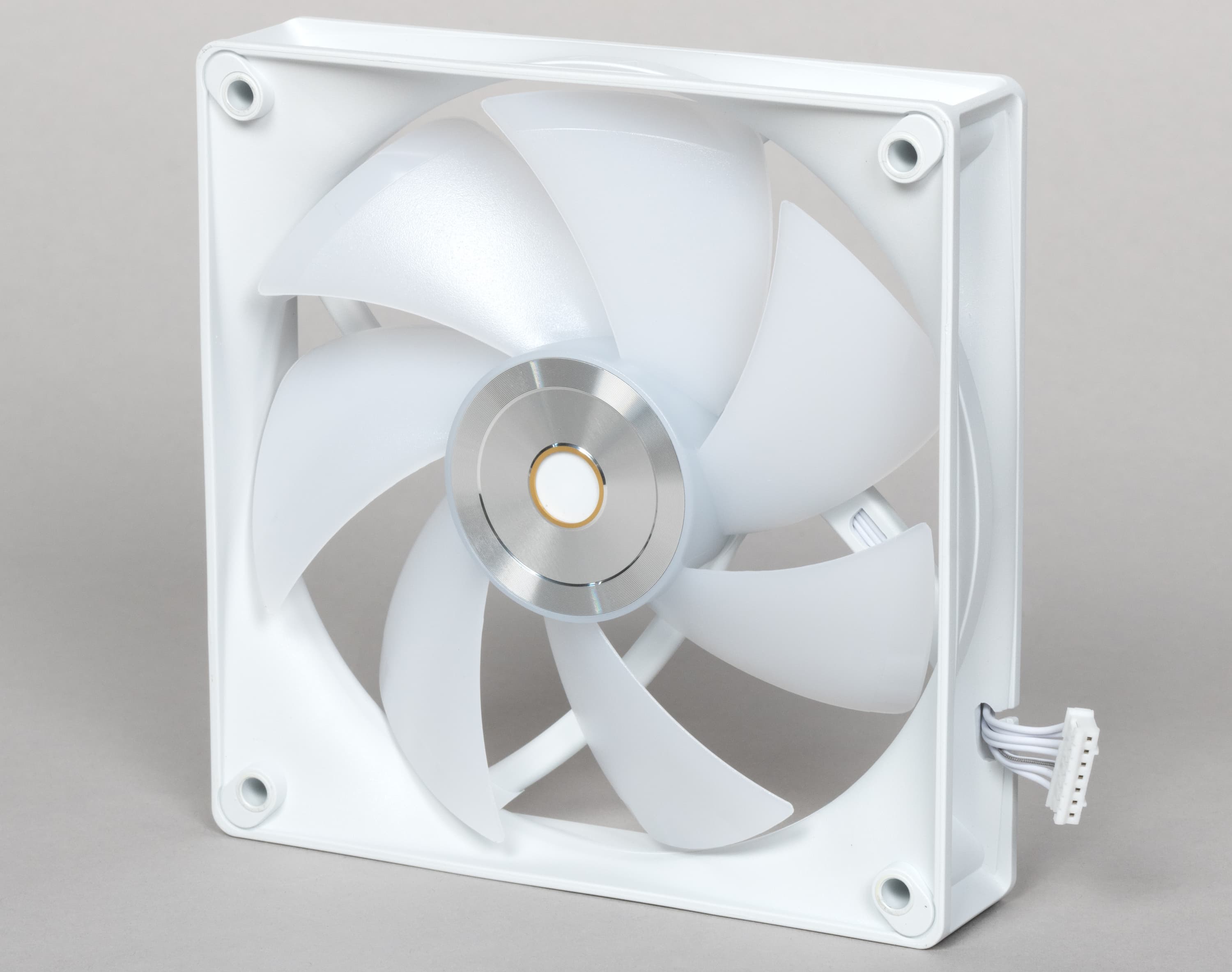 Рамка вентилятора изготовлена из прочного белого пластика. Или черного — в черной версии СЖО.