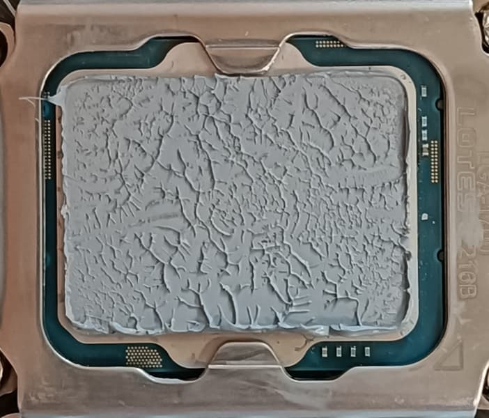Забегая вперед, продемонстрируем распределение термопасты после завершения всех тестов. На процессоре Intel Core i9-13900K: