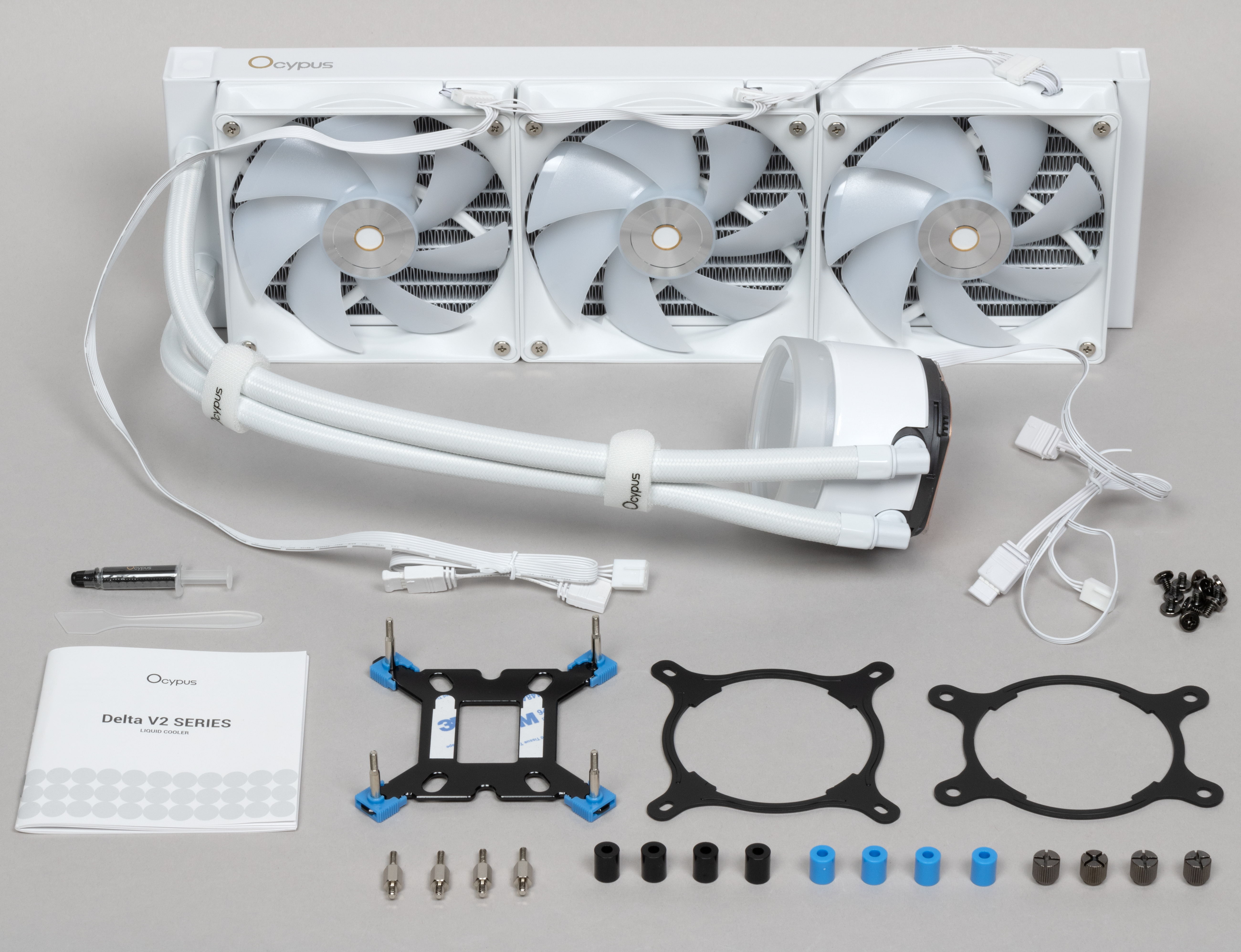 Не успели мы изучить весь модельный ряд систем охлаждения Ocypus, как компания занялась его обновлением. И речь не только о расширении ассортимента, в котором появилась и пара моделей СЖО с цифровым дисплеем на помпе, объединенные в новое семейство Sigma — как и следовало ожидать, с двумя (Sigma L24) и тремя (Sigma L36) вентиляторами. Кроме этого, и «обычные» Delta L24/L36 получили новую версию, обозначенную символами V2 в маркировке. Видимых отличий от первой версии, впрочем, почти нет — за исключением переработанной системы крепления водоблока. В остальном описания систем схожи, а вентиляторы и радиатор, судя по всему, вообще не изменились. В любом случае, «старые» модели из продажи уже исчезли, а трехсекционную СЖО Ocypus мы ранее не тестировали, так что сегодня будем знакомиться с Ocypus Delta L36 WH ARGB V2.