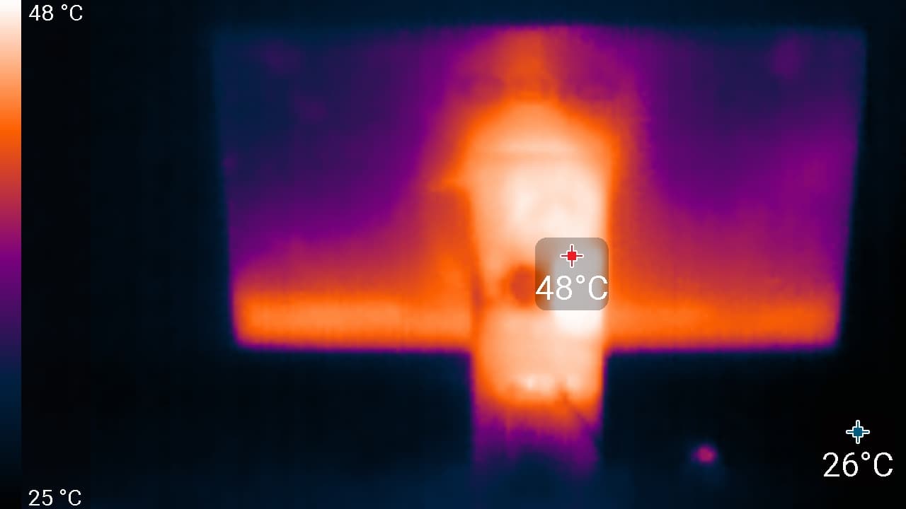 Нагрев корпуса моноблока умеренный. Блок питания греется несильно, но лучше всё равно следить, чтобы при долговременной работе с большой производительностью он не был ничем накрыт.