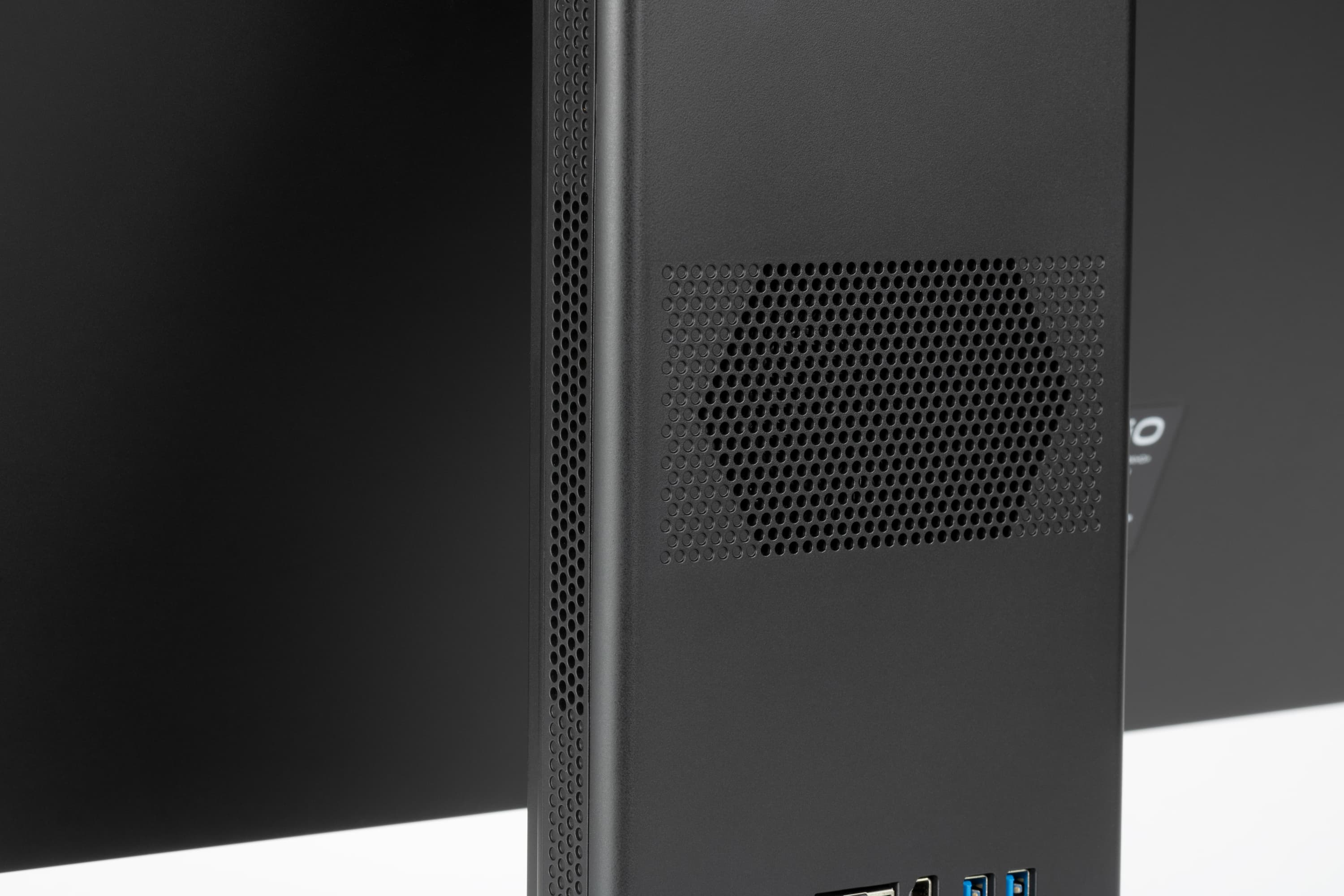 Начнем с ключевой особенности внешнего вида — понять, что это не монитор, а целый моноблок, в профиль практически невозможно. Обычно последние выдает заметная толщина дисплейной части, куда и принято «прятать» компьютер. Если используется популярный в последнее время подход со стандартными платами Thin Mini-ITX, получается нечто толстое по всему размеру, крупные производители хотя бы часть дисплейного модуля делают тонкой, но... Лет 15 назад на это бы никто не обратил внимания, однако современные мониторы стали слишком уж тонкими. И моноблоки OSiO BaseLine B240i тоже столь же тонкие. Поэтому вопрос «где тут компьютер?» всех, кому мы его задавали, приводил в замешательство.