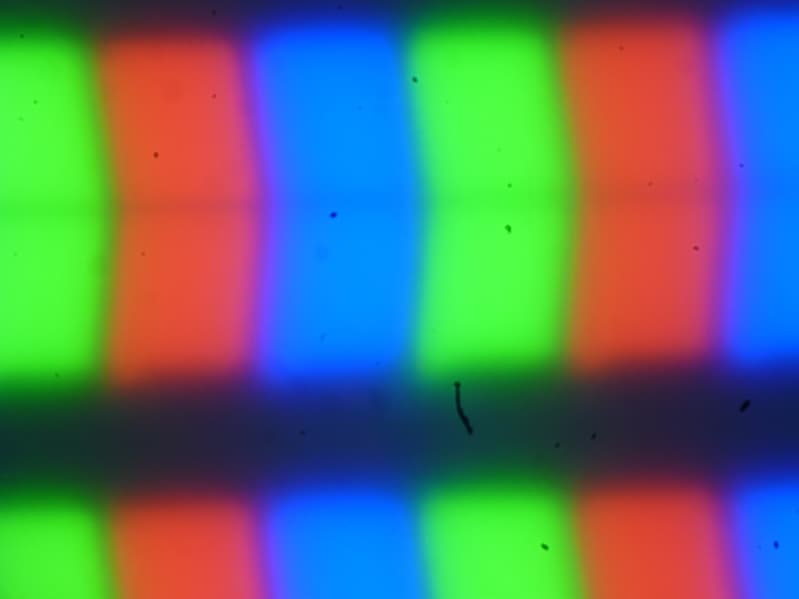 В этом моноблоке используется матрица типа IPS. Из-за матовой поверхности на микрофотографиях экрана характерная для IPS структура субпикселей едва угадывается (черные точки — это пыль на матрице фотоаппарата):