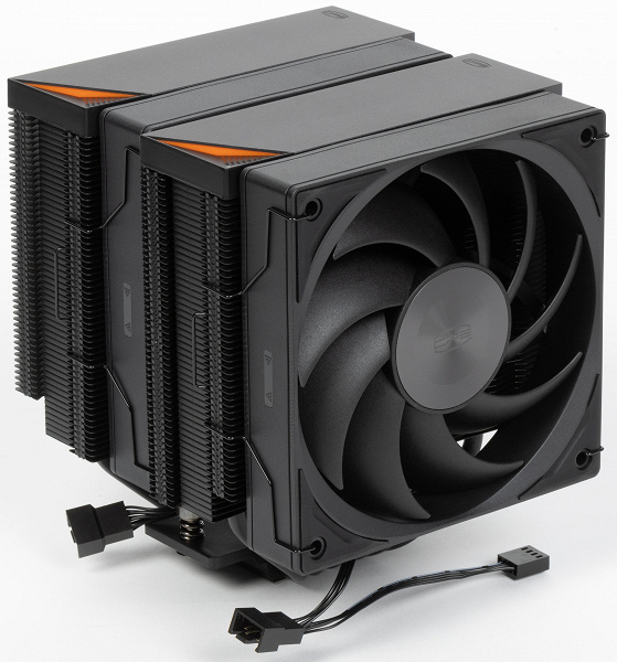 Кулер оснащен двойным вынесенным радиатором, к которому тепло от процессора передается по шести тепловым трубкам. Трубки и нижняя часть теплосъемника медные. Трубки, нерабочая поверхность теплосъемника и пластины радиатора имеют черное полуматовое лакокрасочное покрытие. Это в какой-то степени улучшает теплоотдачу за счет излучения. Верхняя часть теплосъемника изготовлена из алюминиевого сплава. Трубки к теплосъемнику припаяны. Подошва теплосъемника имеет очень мелкую концентрическую проточку и слегка отполирована. Поверхность подошвы немного выпуклая к центру с перепадом порядка 0,1 мм.