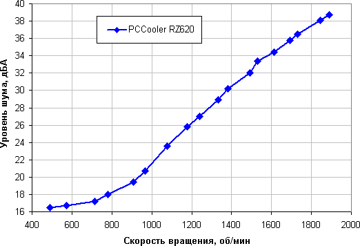 Зависит, конечно, от индивидуальных особенностей и других факторов, но в случае кулеров где-то от 40 дБА и выше шум с нашей точки зрения очень высокий для настольной системы, от 35 до 40 дБА уровень шума относится к разряду терпимых, ниже 35 дБА шум от системы охлаждения не будет сильно выделяться на фоне типичных небесшумных компонентов ПК — вентиляторов корпусных, на блоке питания, на видеокарте, а также жестких дисков, а где-то ниже 25 дБА кулер можно назвать условно бесшумным. Фоновый уровень был равен 16,2 дБА (условное значение, которое показывает шумомер).