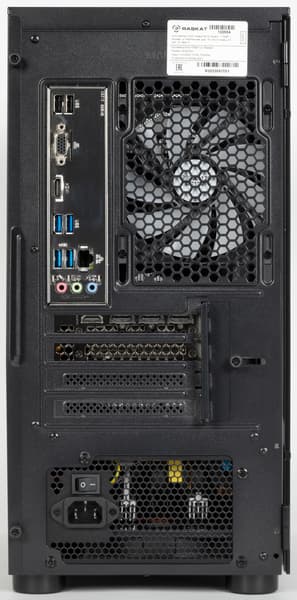 Нет их и сзади. Лишь еще четыре USB 3.0 (простите, USB 3.2 Gen1) и пара USB 2.0. Их дополняют три аудиоразъема и гигабитный Ethernet. Видеоразъемы с выбранным процессором никак не используются, хотя их набор включает редкий ныне аналоговый VGA — кто-то может купить, посмотрев лишь на фото, в расчете на подключение старого монитора и оказаться... несколько фраппирован.