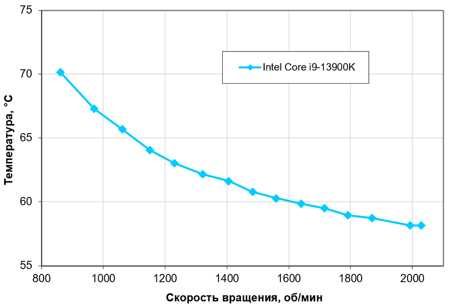 Полное описание методики тестирования приведено в соответствующей статье «Методика тестирования процессорных охладителей образца 2020 года». В данном тесте все ядра процессора Intel Core i9-13900K работали на частоте 3,7 ГГц.