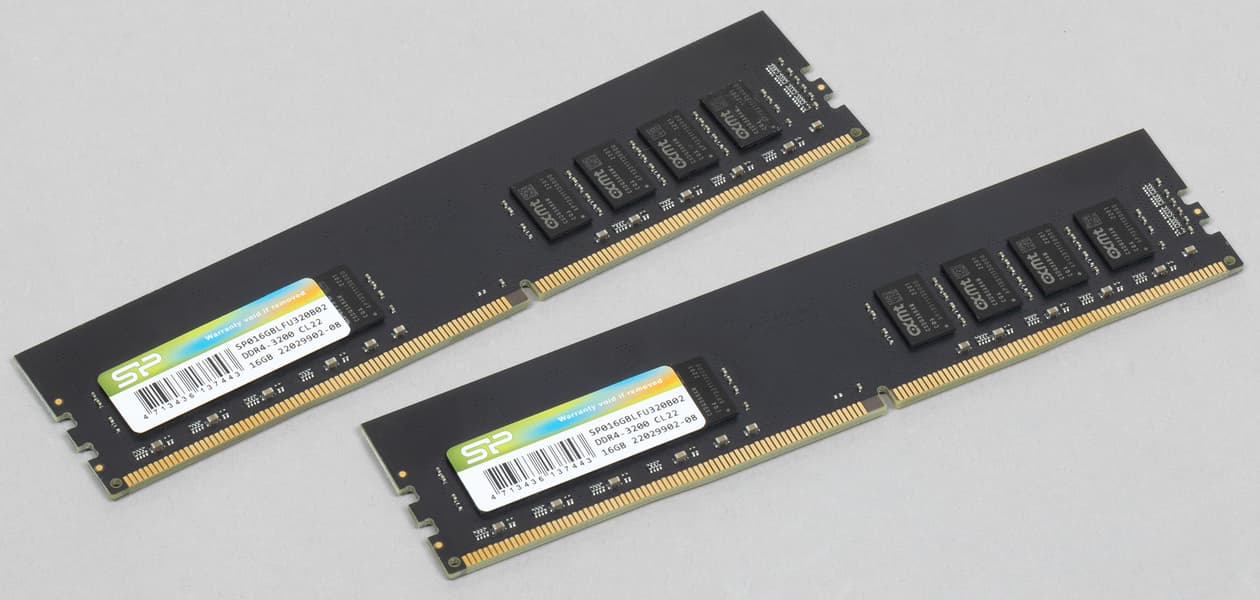 Подобных модулей на рынке много, но они редко становятся героями обзоров. Поскольку чего там особо изучать, когда все и так понятно? Так, в общем-то, и есть — но иногда нужно более подробно разбираться с тем, что же именно понятно. Мы сегодня решили по этому поводу познакомиться с парой модулей DDR4-3200 от Silicon Power. Парой — поскольку так привычнее. На деле это штучный товар, хотя в «регулярной» линейке, не имеющей каких-то громких названий, есть и комплекты. Вплоть до четырех модулей DDR4-2133 по 4 ГБ — накопилось за время выпуска всякого. И по частотам — доступны варианты от 2133 до 3200 МГц. И по емкости — от 4 до 32 ГБ. Хотя не все сочетания встречаются: так, например, максимум для 2133 и 2400 составляет 16 ГБ, самое современное семейство (DDR4-3200) с 8 ГБ только начинается (вспоминаем сказанное выше насчет емкости в современных реалиях), а DDR4-2666 бывает всевозможной. Общего здесь — отсутствие не только удобоваримого названия, но и вообще каких-либо радиаторов. Которые и не слишком нужны, поскольку все модели рассчитаны на стандартные для DDR4 1,2 В (оверклокерские же модули для «своих» режимов требуют 1,35 В, а то и больше). PCB при этом имеет типичную высоту в 32 мм — можно было бы и сократить. Производитель упоминает «100% factory tested» (как будто может предполагаться иное) и предлагает Lifetime-гарантию. У нас это слово чаще всего переводят как «пожизненная», хотя на деле имеется в виду не срок жизни конкретного модуля или покупателя, а конкретной линейки на рынке. Т. е. пока не объявлен End of life, гарантия действует. Случился EOL? Извините :) Российское законодательство требует точных сроков гарантии, почему в наших магазинах обычно на эти модули установлен пятилетний срок — тоже можно считать, что и «пожизненно», поскольку раз в пять лет стандарты меняются (да и вообще вся жизнь иногда тоже радикально меняется). Но можно в дальнейшем и связываться непосредственно с производителем (если EOL не объявят, чем производители памяти очень редко занимаются) — это менее удобно, чем обращаться в магазин, но возможно.