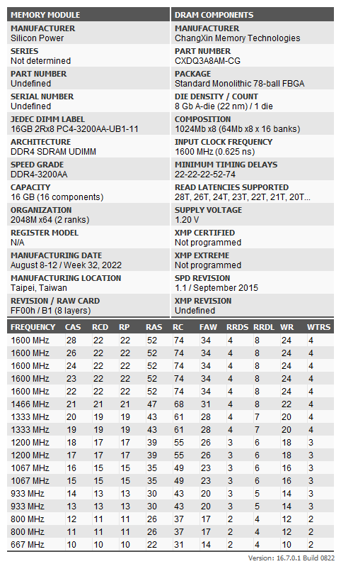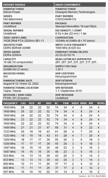 В общем, глазу особо и не за что зацепиться. Кроме одного — «накопилось» в серии не только много разных частот и емкостей, но и конкретных моделей с формально одинаковыми характеристиками. Причина простая — используются чипы разных производителей. К чести Silicon Power, компания не пытается продавать разные модули под одинаковым названием — почему в ее ассортименте той же DDR4-3200 на 16 ГБ есть четыре разных модели плюс еще пять комплектов из пары модулей. Но маркировка — маркировкой, а вот что под ней скрывается — особо не афишируется. Наше же внимание привлекли одиночные SP016GBLFU320B02 — которых на страничке продукта вообще нет (на других языках тоже — мы проверяли). Есть B01, есть X02, есть F02, есть сдвоенный комплект B22 — а этот, видимо, просто пропустили :) Бывает — слишком много однотипных продуктов. Главное, что в продаже есть. В упомянутом «Ситилинке» продаются по 3190 рублей за штуку.