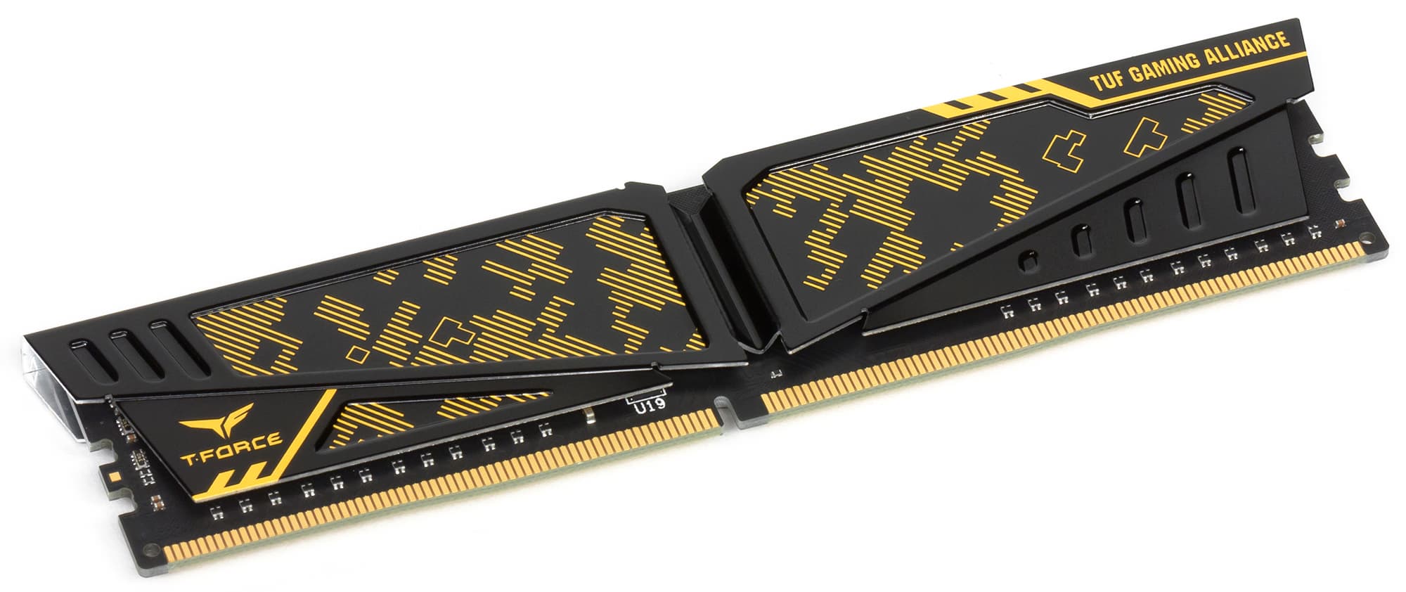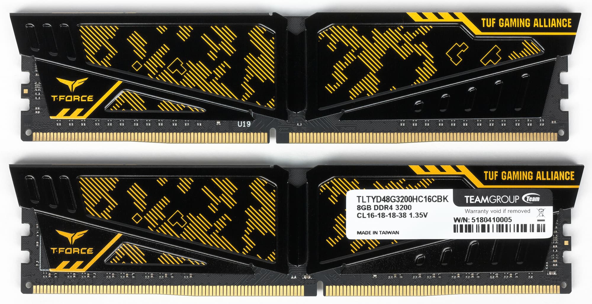Как указано на сайте производителя, данная память имеет сертификацию TUF Gaming Alliance. При слове TUF, естественно, возникает ассоциация с материнскими платами Asus серии TUF. И не случайно. Бренд TUF Gaming Alliance и был создан Asus в сотрудничестве с другими компаниями. В частности, под брендом TUF Gaming Alliance продаются продукты компании Cooler Master и вот теперь память компании TeamGroup. Что именно понимается под сертификацией TUF Gaming Alliance и каким требованиям должны отвечать продукты, чтобы получить данную сертификацию, не очень понятно. Никакой информации на этот счет нам не удалось найти, и скорее всего, такой информации просто не существует. Впрочем, это не столь важно. Есть на упаковке модулей памяти соответствующий логотип — и прекрасно.