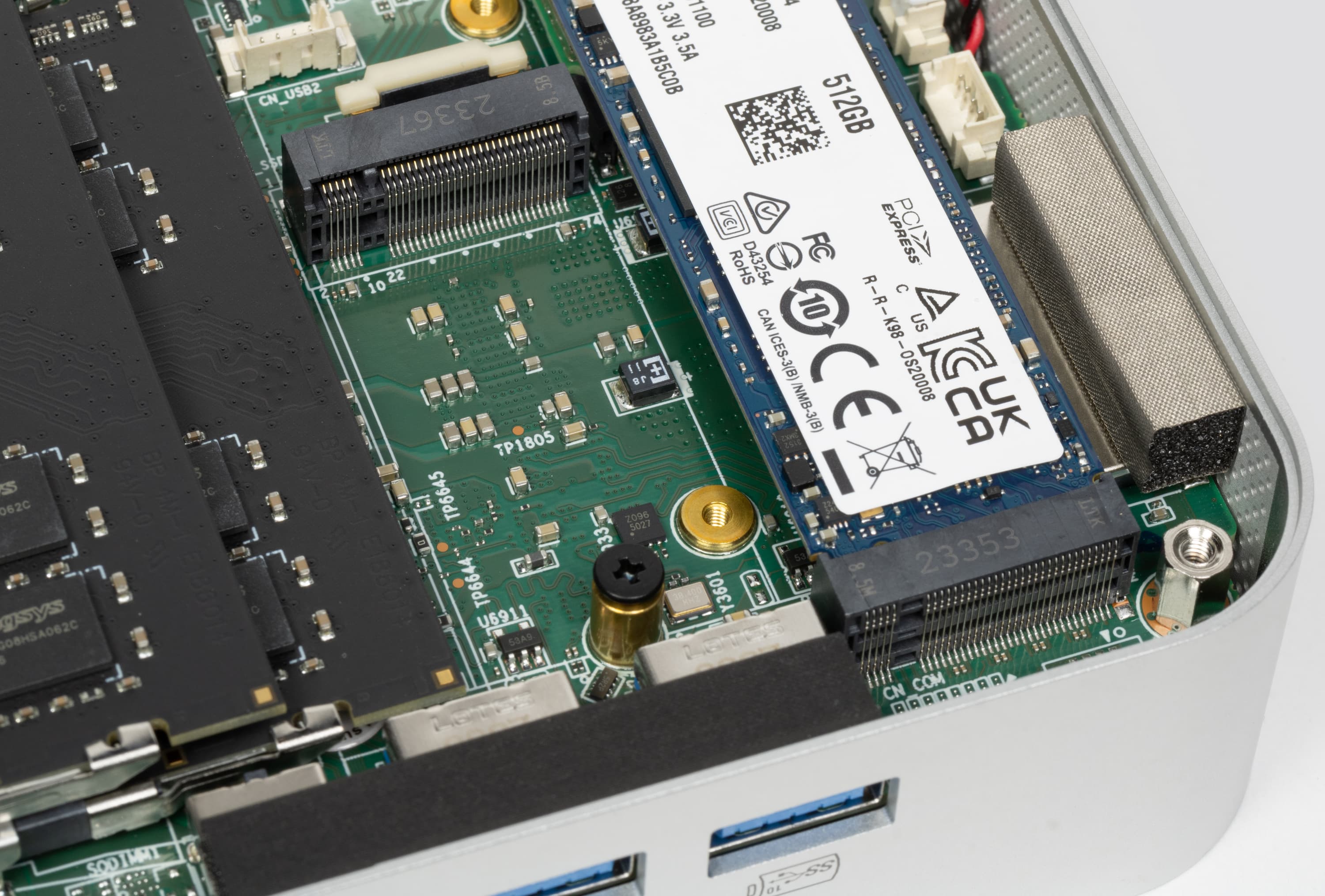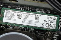 А вот слот M.2 2242 вообще не документирован. Причина проста — подходят только SATA SSD (неработоспособность NVMe в этом слоте нами проверена), то есть уже уходящая натура. Да еще и форм-фактор экзотическим всегда был, почему компания решила об этой особенности не распространяться. Но при желании сюда можно установить и второй SSD — Transcend свой 425S выпускает до сих пор с емкостью до 2 ТБ, аналогичные предложения (подешевле) водятся на разных маркетплейсах. Однако придется помнить, что возможность эта официальной не является, да и всё, что может быть подходящего найдено, еще хуже «штатного» SSD. Хотя под файлопомойку может и сгодиться.