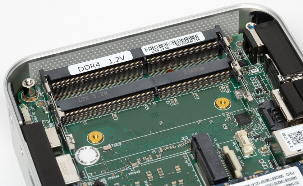 Вот чего из относительно стандартного для мини-ПК нет, так это отсека под двухдюймовые жесткие диски и SSD. А вот разъем для его подключения на плате есть. Судя по всему, от его использования пришлось отказаться из-за желания Tecno сделать компактный и красивый корпус, да еще и снабженный двойным дном. Пользы от такого отсека было бы больше, чем от M.2 SATA — но и она постепенно сокращается. В первых NUC, кстати, поддержки двухдюймовок не было — появились уже в моделях на Haswell в части моделей. И долгие годы обычной практикой был одновременный выпуск двух моделей на одной плате: «тонкой» с поддержкой только «карточного» SSD и «толстого» под два накопителя. С тех пор много воды утекло, рынок накопителей изменился радикально, так что и от такого подхода можно уже отказаться безболезненно.