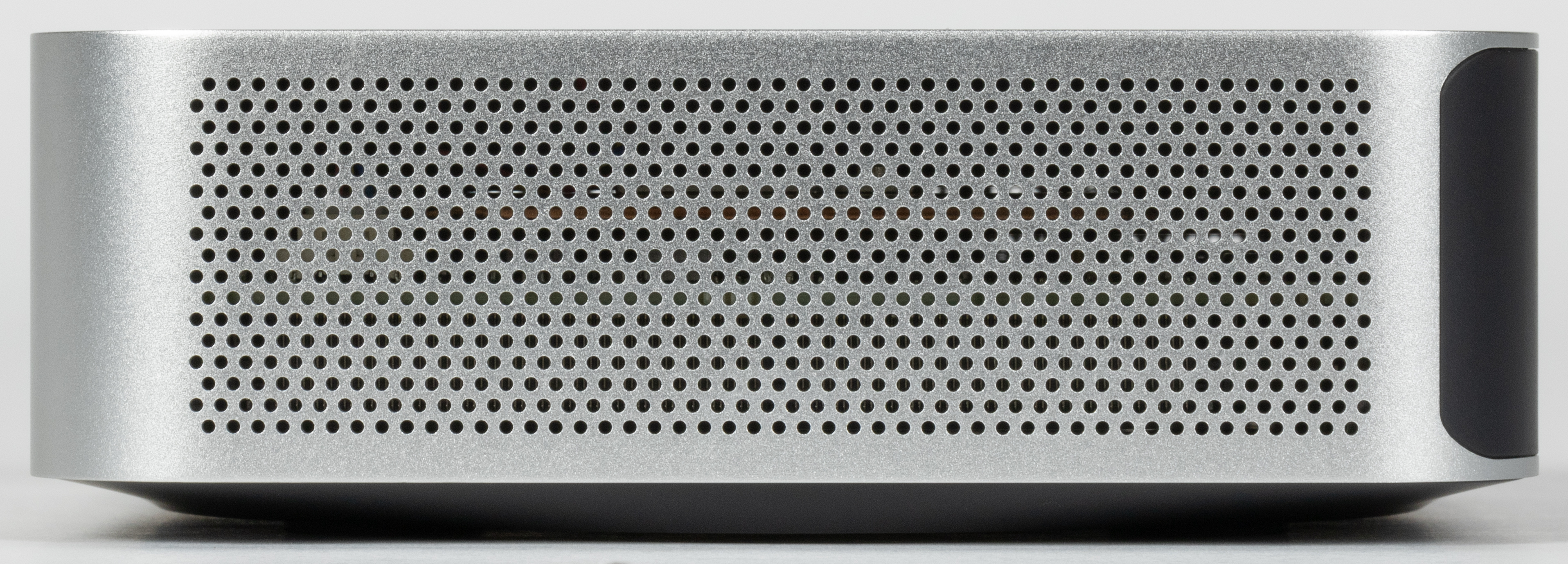 Что же касается Tecno Mega Mini M1, то по набору и расположению интерфейсных портов он в точности повторяет Intel NUC двенадцатого и тринадцатого поколений. Однако и не он один. Отличительной же особенностью является корпус из алюминиевого сплава — у большинства аналогичных моделей пластика в конструкции гораздо больше, а металлические детали попроще и утилитарнее. Тут же есть ровно одна пластиковая вставка сзади и пластиковая же крышка снизу — весь остальной корпус «вырублен» из цельной глыбы алюминия. Смотрится очень эффектно.