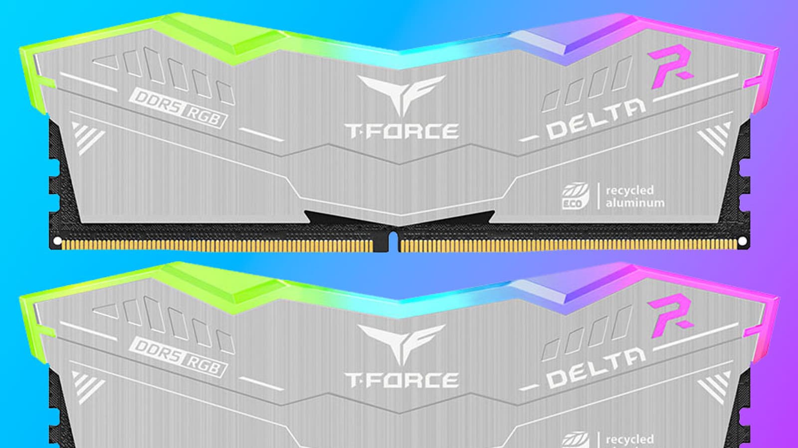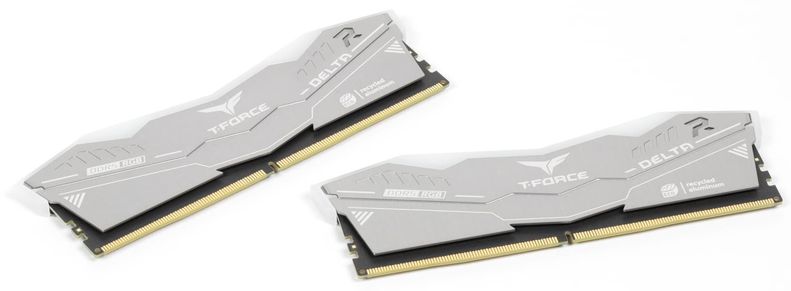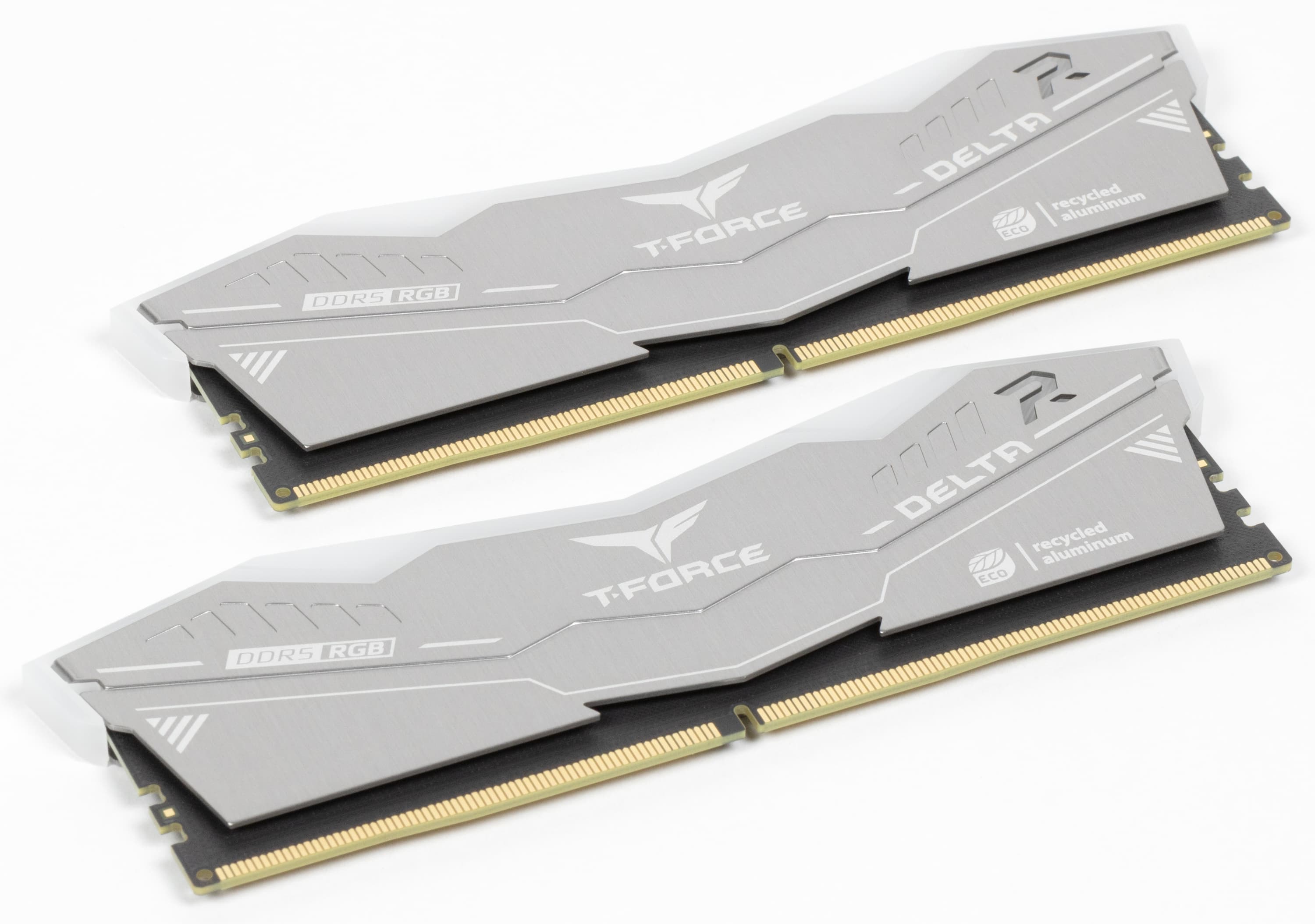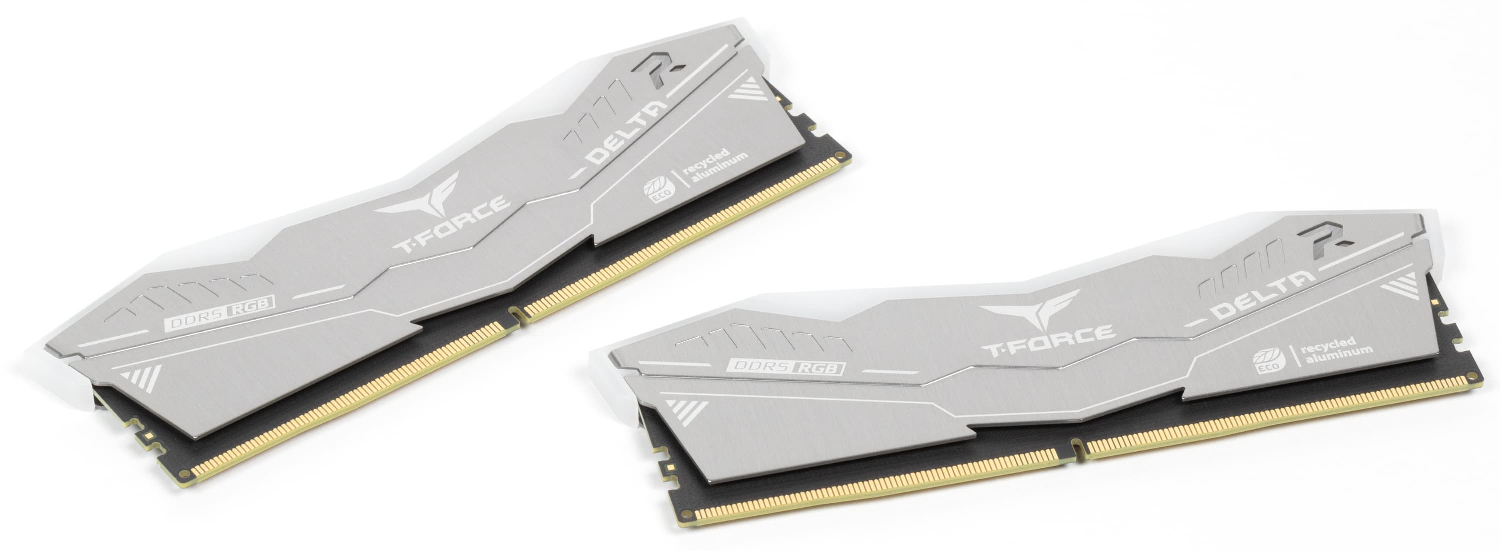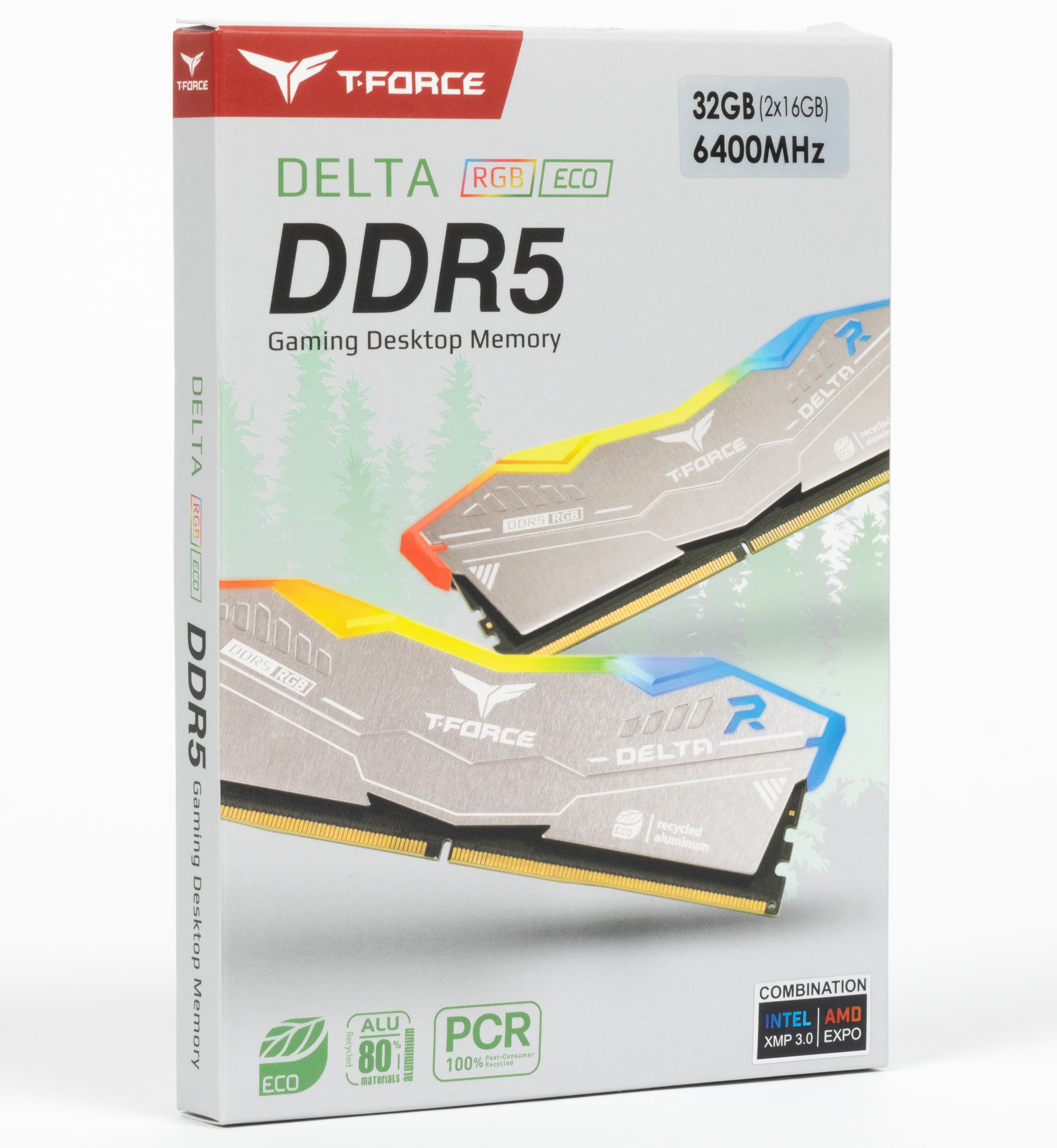 Так что посмотрим — насколько под определение разумный компромисс подходит новый продукт от TeamGroup. Формулировка способна удовлетворить самого взыскательного «зеленого»: Первая в отрасли экологически чистая память DDR5 с RGB-подсветкой для разгона. Но, если немного подумать, это предложение с особым цинизмом. Очевидно, что ни разгон, ни, тем более, подсветка в экологичную картину мира никак не вписываются. Тут бы в самый раз подошли низкочастотные модели вообще без радиаторов, а не только без светодиодов — самые экономичные и требующие минимума материалов при производстве. Но разумным компромиссом считать можно и предложенное, а «регулярные» модели — не меньшая крайность, чем экстремальные комплекты. Как бы то ни было, но высокочастотные модули с подсветкой части покупателей интересны, так что и им нужно что-то предлагать, не заставляя впадать в крайности. Тем более, в этой серии за экстримом компания не гоняется: пока доступны комплекты DDR5-6000 на 64 ГБ и вдвое меньшие под частоты 5600, 6000 и 6400 МГц. «Приличная» память со многими такими режимами справляется даже без увеличения напряжения, так что высокой прожорливостью не отличается.
