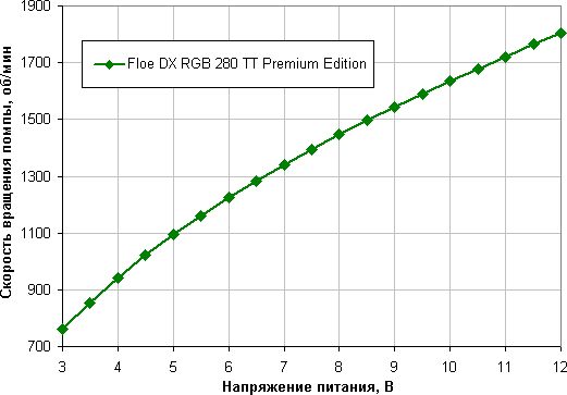 Приведем также зависимость скорости вращения помпы от напряжения питания: