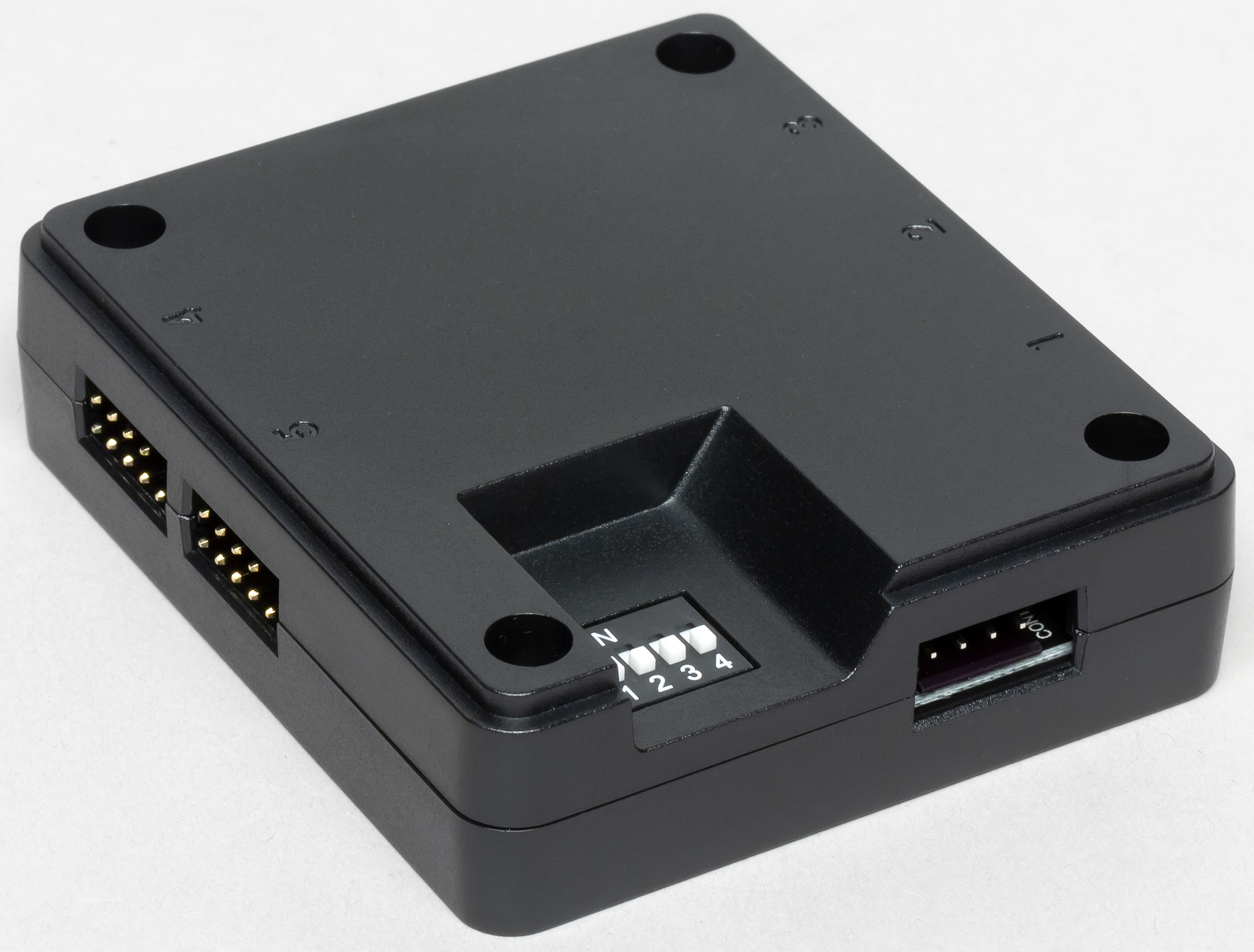 Контроллер к источнику питания подключается кабелем (длиной 50 см) с периферийным разъемом (его обычно называют «гнездом типа Molex»). Соединять эти разъемы в варианте, когда обе части на кабеле, не всегда просто, поэтому если на кабеле от блока питания есть свободный разъем питания для 3,5″ дисковода, то лучше подключить этот разъем непосредственно к контроллеру. Два кабеля (длиной 86,5 см каждый) с разъемами Micro-USB выходят из одного разъема к колодке USB 2.0. Этими кабелями соединяется контроллер и системная плата. Так как разъемов Micro-USB два, то к одной колодке подключить можно сразу два контроллера. Для адресации контроллера в системе его номер выставляется с помощью переключателей на нижней стороне контроллера. В системе одновременно может работать до 16 независимо управляемых контроллеров, и к каждому может быть подключено до пяти вентиляторов или водоблоков, что в итоге дает до 80 независимо управляемых устройств. Устройства подключаются к 9-штырьковым разъемам на контроллере. На одной грани контроллера 3 таких разъема, на второй — 2. Исследование функций контактов показало, четыре в ряд — это земля (общий контакт), питание 12 В, вход датчика вращения вентилятора и выход управления с помощью ШИМ, а четыре контакта во втором ряду используются для управления RGB-подсветкой. Контакты на разъемах вентиляторов данной системы расположены так, что их можно подключать к стандартным четырехконтактным разъемам для вентиляторов на материнской плате, но в таком варианте функции управления подсветкой задействовать, разумеется, не получится.