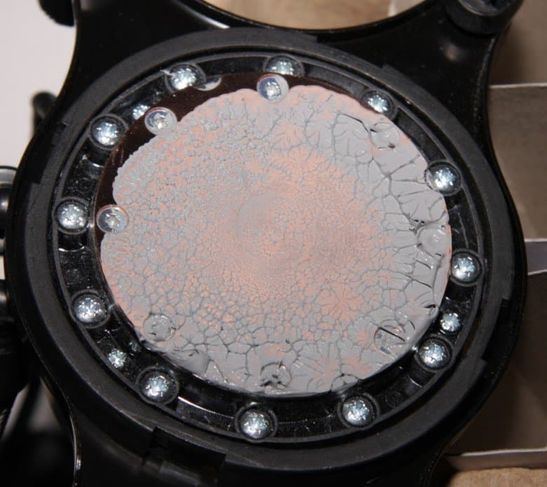 Помпа (в данном случае систему уже использовали, поэтому оригинального слоя термопасты не осталось):