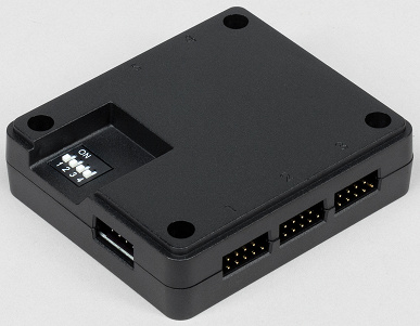 Контроллер к источнику питания подключается кабелем с периферийным разъемом («типа Molex»). Соединять эти разъемы в варианте, когда обе части на кабеле, не всегда просто, поэтому если на кабеле от блока питания есть свободный разъем питания для 3,5″ дисковода, то лучше подключить этот разъем непосредственно к контроллеру. Два кабеля с разъемами Micro-USB выходят из одного разъема к колодке USB 2.0. Этими кабелями соединяется контроллер и системная плата. Так как разъемов Micro-USB два, то к одной колодке подключить можно сразу два контроллера. Вторым способом увеличения числа подключенных контроллеров является использование последовательного соединения контроллеров специальным входящим в комплект кабелем. Для адресации контроллера в системе его номер выставляется с помощью переключателей на нижней стороне контроллера. В системе одновременно может работать до 16 независимо управляемых контроллеров, и к каждому может быть подключено до 5 вентиляторов или водоблоков, что в итоге дает до 80 независимо управляемых устройств. Устройства подключаются к 9-штырьковым разъемам на контроллере. На одной грани контроллера 3 таких разъема, на второй — 2. Исследование функций контактов показало, четыре в ряд — это земля (общий контакт), питание 12 В, вход датчика вращения вентилятора и выход управления с помощью ШИМ, а четыре контакта во втором ряду используются для управления RGB-подсветкой. Контакты на разъемах вентиляторов данной системы расположены так, что их можно подключать к стандартным четырехконтактным разъемам для вентиляторов на материнской плате, но в таком варианте функции управления подсветкой задействовать, разумеется, не получится.