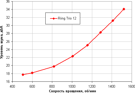 Видно, что по этому параметру вентилятор из набора Riing Trio 12 LED RGB Radiator Fan TT Premium Edition занял среднюю позицию.