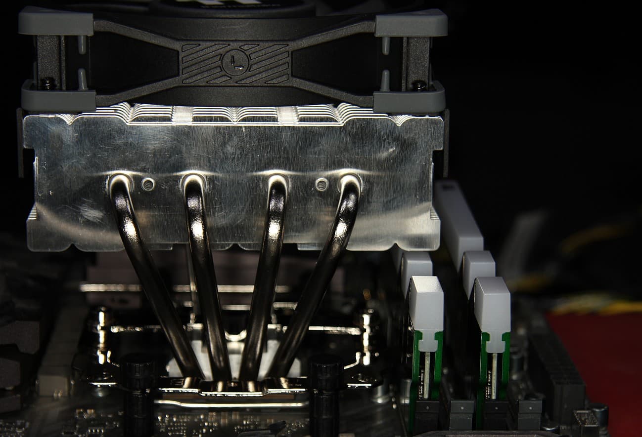 В случае ToughAir 310 разъемы для памяти не перекрываются, но очень высокие модули памяти придется устанавливать после установки кулера, и они уже могут частично перекрывать вентилятор, что потенциально ухудшит работу кулера.
