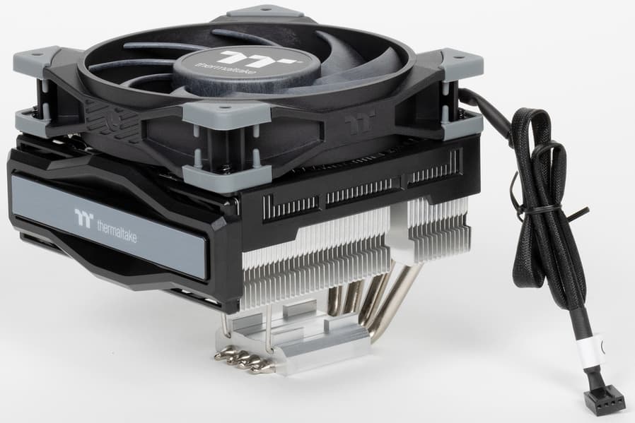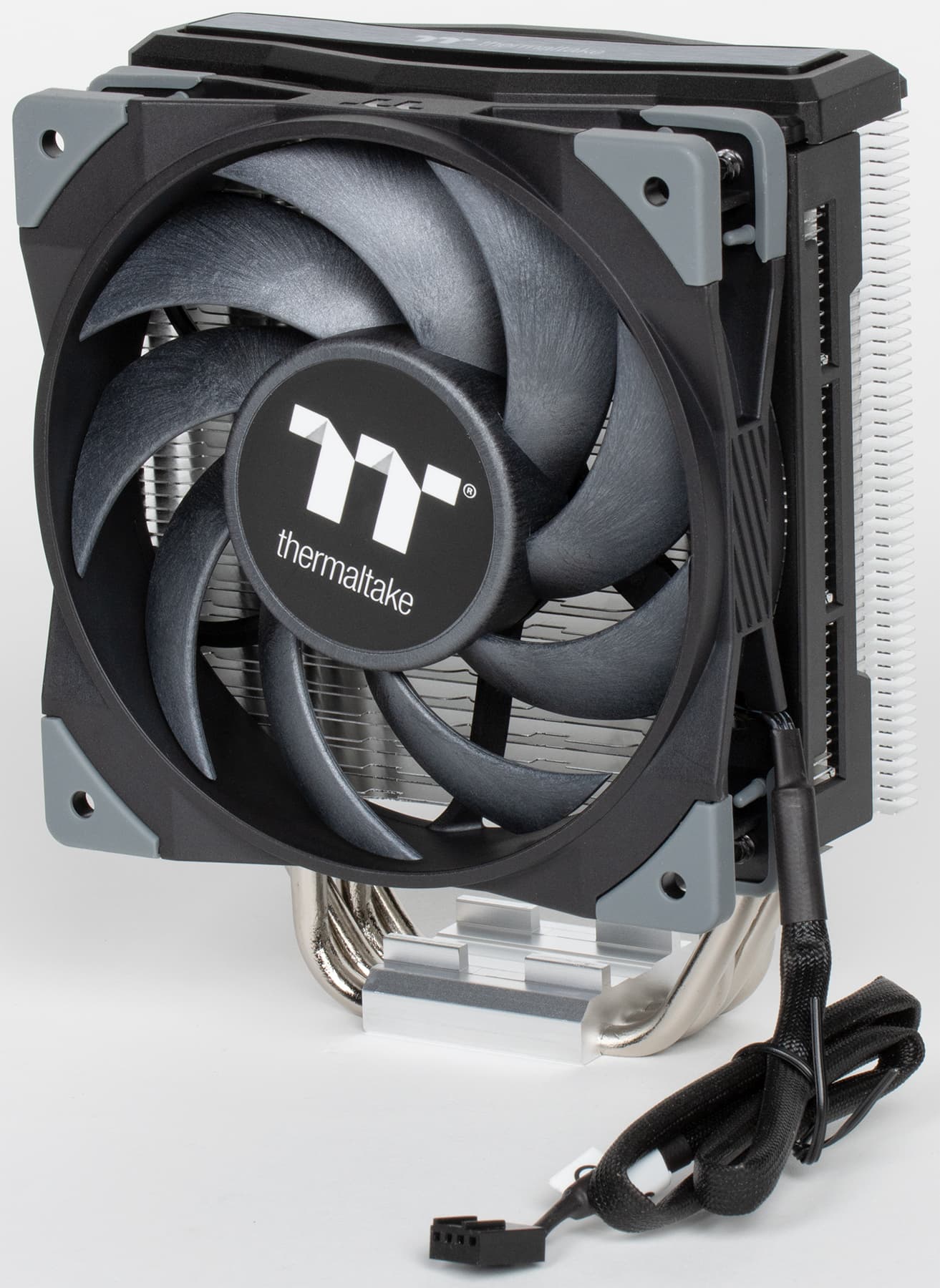 На основе кулеров Thermaltake ToughAir 110 и ToughAir 310 можно создать условно бесшумный компьютер (уровень шума 25 дБА и ниже), оснащенный процессором типа AMD Ryzen 9 3950X, если потребление процессора под максимальной нагрузкой не будет превышать 97 и 108 Вт, соответственно, а в случае процессора AMD Ryzen 7 1800X — 104 и 118 Вт. Это даже при условии, что температура внутри корпуса может повышаться до 44 °C. При снижении температуры охлаждающего воздуха и/или менее жестких требованиях к уровню шума пределы мощности во всех случаях можно увеличить. К достоинствам кулеров следует отнести центральный прижим, исключающий перекос, низкую высоту в случае ToughAir 110, удобную установку вентилятора на радиатор, хорошую совместимость с высокими модулями памяти и возможность установки на процессоры Intel LGA1700.