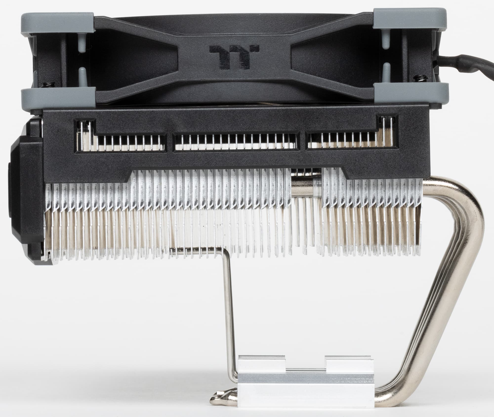 Радиатор представляет собой стопку алюминиевых пластин (50 шт. у ToughAir 110 и 52 шт. у ToughAir 310), плотно насаженных на тепловые трубки. В случае ToughAir 110 радиатор дополнительно придерживается стальной скобкой из нержавеющей стали, хотя особой надобности в этом нет.