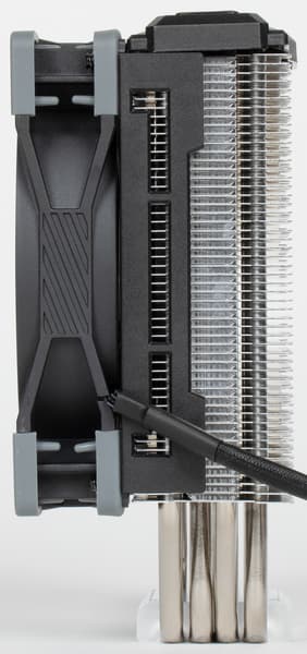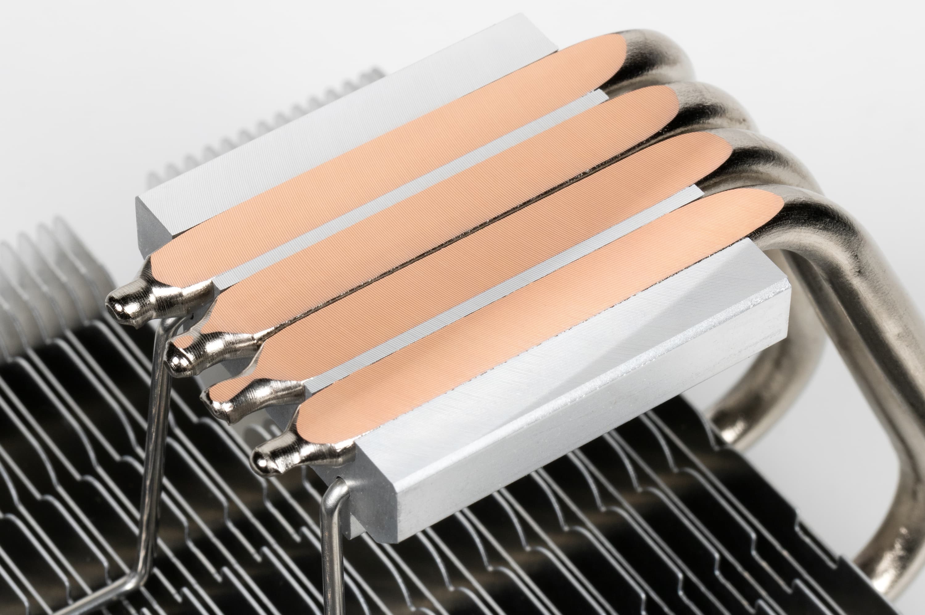 | Материал радиатора | пластины из алюминия (0,4 мм толщиной) и медные тепловые трубки (4 шт. ∅6 мм, прямой контакт с крышкой процессора) | |