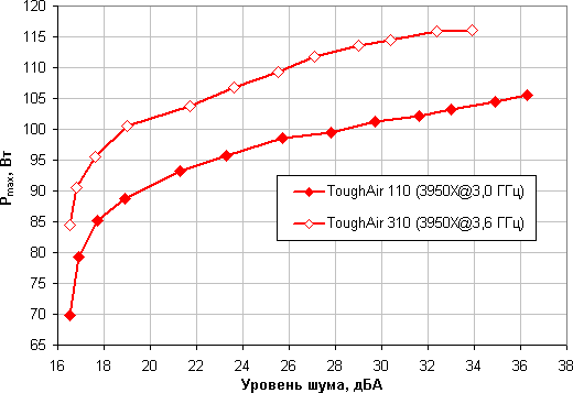 | Кулер | Pmax (при 25 дБА), Вт | Pmax, Вт |