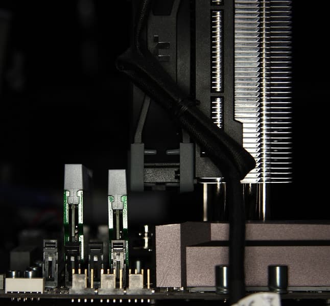 В случае ToughAir 110 радиатор перекрывает ближайший к процессору разъем для установки оперативной памяти, поэтому максимальная высота модуля памяти, который можно установить в этот слот, равна 48 мм, что не так уж и мало — помещается радиатор и высокая полоска с подсветкой.