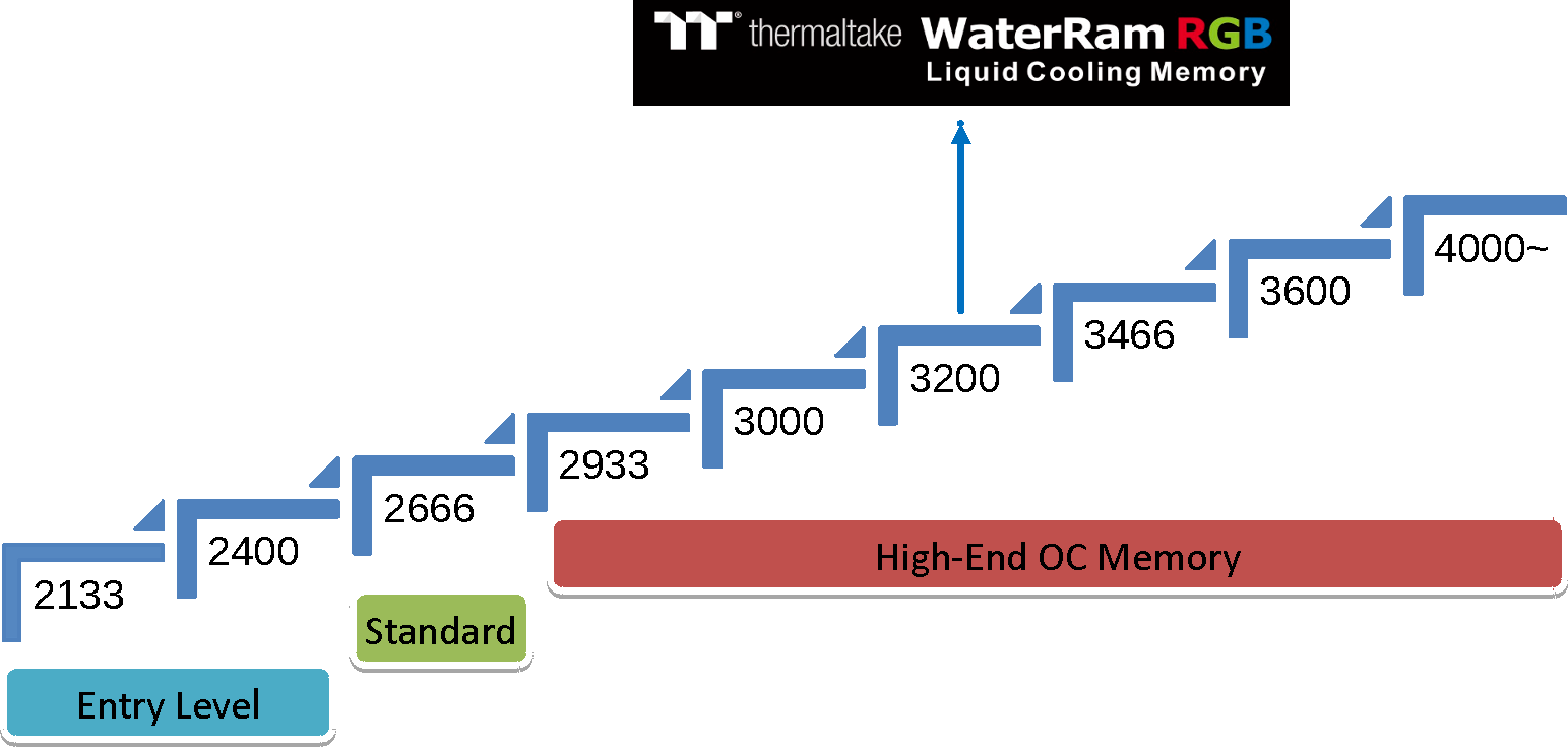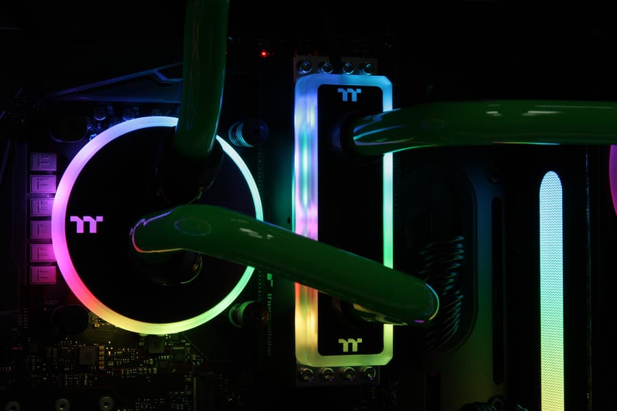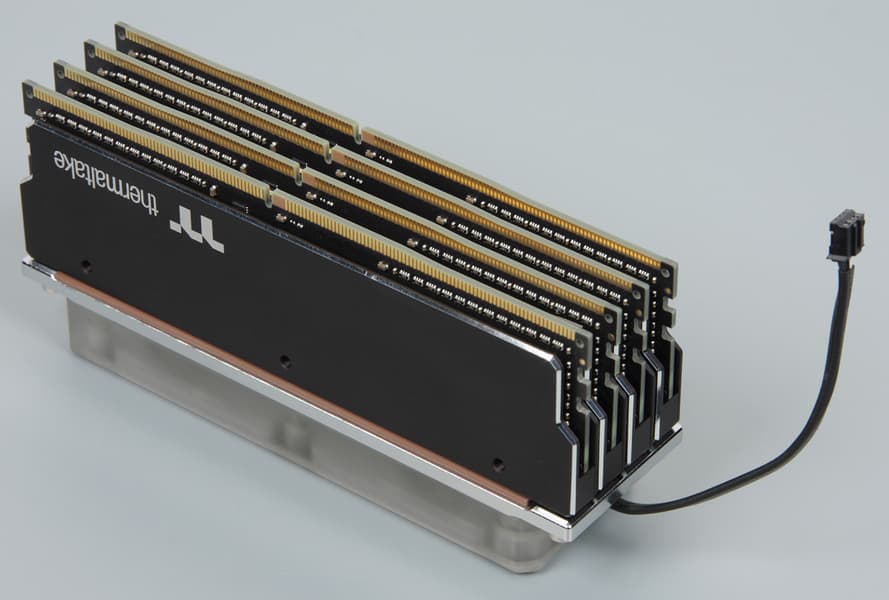Набор модулей памяти с водяным охлаждением и длинным названием WaterRam RGB Liquid Cooling Memory DDR4-3200 32 ГБ (4×8 ГБ), который создала компания Thermaltake, состоит из четырех модулей памяти умеренно оверклокерской категории, оснащенных радиаторами, и одного водоблока с многозонной и многоцветной подсветкой. Как показало тестирование, такое охлаждение существенно снижает температуру модулей памяти, работающих под большой нагрузкой, в сравнении с модулями без радиаторов или с типичными небольшими радиаторами, выполняющими преимущественно декоративную функцию. Снижение температуры может способствовать увеличению стабильности работы и срока службы модулей памяти, увеличение разгонного потенциала также может иметь место, но вряд ли его стоит принимать во внимание. На что точно обращаешь внимание, так это на лаконичный «индустриальный» дизайн, сочетающийся со стилем водоблоков Thermaltake для процессоров, а также на красочную подсветку, которой можно управлять согласованно с другими устройствами экосистемы TT RGB Plus, объединяющей продукты с адресной светодиодной подсветкой и ПО TT RGB Plus. Набор WaterRam RGB наверняка оценят энтузиасты, собирающие эффектно выглядящие компьютеры с дискретной системой жидкостного охлаждения.