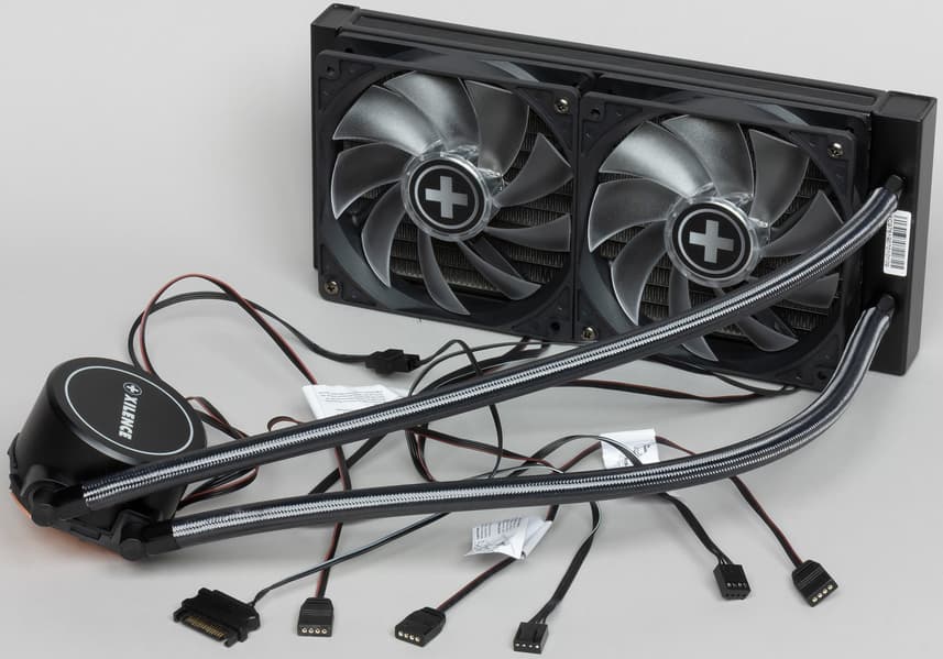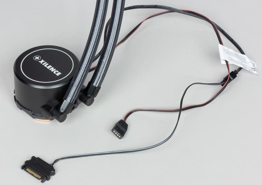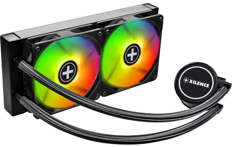 На основе системы жидкостного охлаждения Xilence LQ240RGB можно создать условно бесшумный компьютер, оснащенный процессором типа Intel Core i9-7980XE (Intel LGA2066, Skylake-X (HCC)) с тепловыделением порядка 245 Вт максимум. При этом даже с учетом возможного повышения температуры внутри корпуса до 44 °C и при условии долговременной максимальной нагрузки все равно будет сохраняться очень низкий уровень шума — 25 дБА и ниже. В случае процессора типа AMD Ryzen Threadripper 2990WX для условно бесшумного компьютера мы получили предел в 220 Вт. При снижении температуры воздуха и/или менее жестких требованиях к уровню шума пределы мощности можно значительно увеличить. Любители моддинга оценят RGB-подсветку помпы и вентиляторов, которая поможет украсить внутреннее пространство системного блока. Отметим хорошее качество изготовления, удобные в работе плоские кабели без оплетки, подключение к разъему питания SATA, удобный крепеж водоблока и довольно длинные шланги.