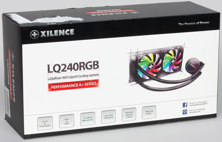 Поставляется система жидкостного охлаждения Xilence LQ240RGB в красочно оформленной коробке из тонкого гофрированного картона.