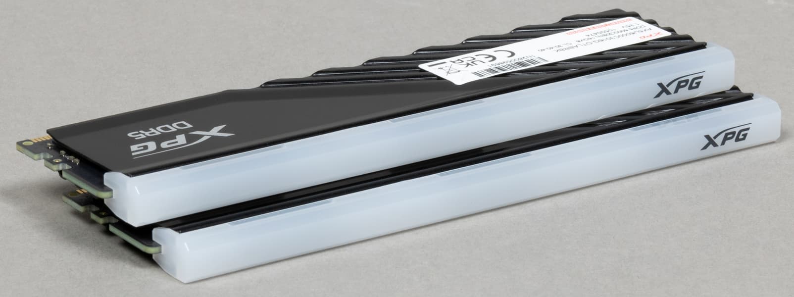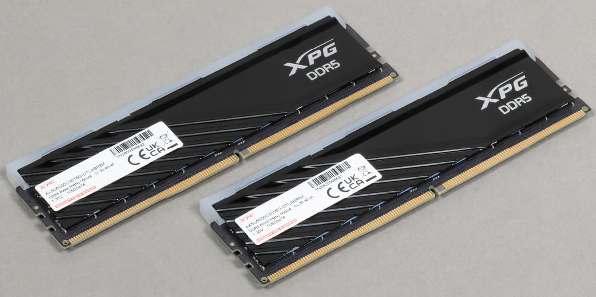 А если в плане официальной поддержки не замахиваться на уровень выше DDR5-6000 или около того, то и платить много не придется. Такие комплекты на 32 ГБ обычно лишь немногим дороже, чем пара самых дешевых модулей по 16 ГБ с более низкими частотами. На деле существенно выгадать можно лишь ограничившись 16 ГБ в сумме и покупая модули вообще без радиаторов (которые для DDR5 входят в рекомендованные компоненты), что в 2023 году как-то странно: вкладываться в перспективность, ограничиваясь даже не вчерашней, а позавчерашней емкостью. На удивление недорог и наш сегодняшний герой — не самое дешевое предложение в магазинах, но одно из таких. Иногда Lancer Blade RGB может оказаться даже дешевле обычных Lancer Blade в том же магазине — отличный повод полюбить, наконец-то, подсветку.