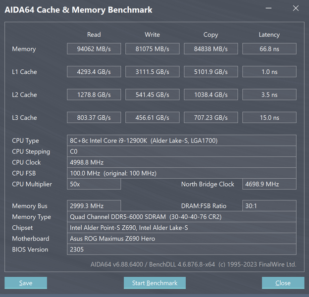 | DDR5-6000 / 30-40-40-76 (XMP) | 66,8 |