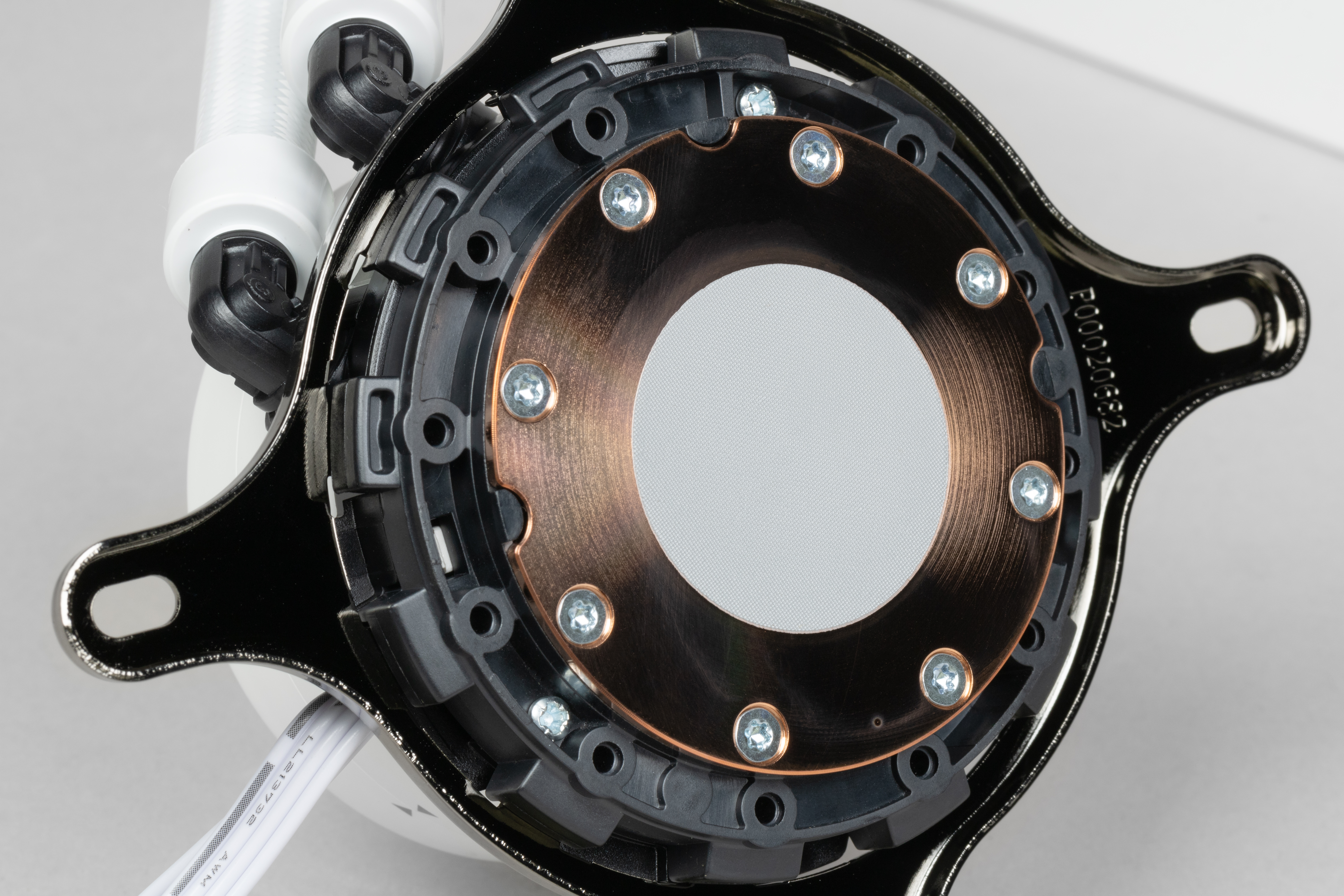 Широко доступна также черная версия системы, но крепеж в обоих случаях не крашенный. Система привычная — с пластиной на обратную сторону платы (для Intel — в комплекте, на платформах AMD используется штатная), проставками разной высоты и ответной частью в виде рамки на блок помпы. Под Intel — уже установлена, так что для монтажа на процессоры AMD ее нужно заменить на соответствующую.