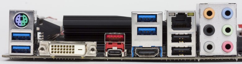 Два порта USB 3.1, выведенные на заднюю панель платы, реализованы на базе контроллера ASMedia ASM3142, который подключается к чипсету двумя линиями PCIe 3.0. Один из этих портов имеет разъем Type-A, а другой — разъем Type-C.