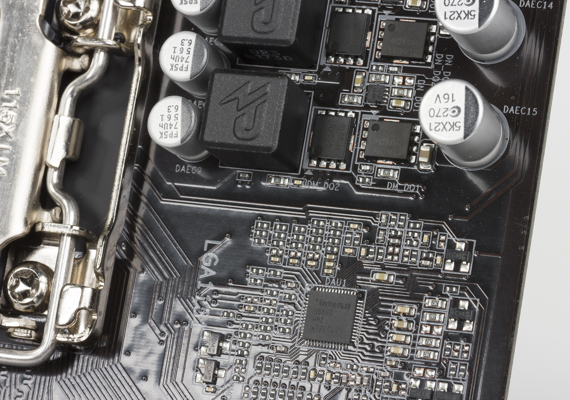 Аудиоподсистема платы Z370 Aorus Gaming K3 основана на кодеке Realtek ALC1220 и изолирована на уровне слоев PCB от прочих компонентов платы и выделена в отдельную зону.
