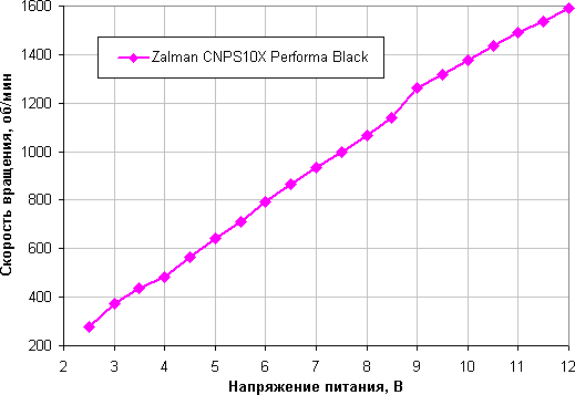 Диапазон регулировки с помощью напряжения в данном случае заметно шире. Вентилятор останавливается при снижении напряжения до 2,0 В и запускается от 2,3 В. Вентилятор вполне допустимо подключать к источнику с напряжением 5 В.