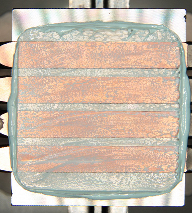 Слой термопасты имеет очень небольшую толщину на большей части крышки процессора.