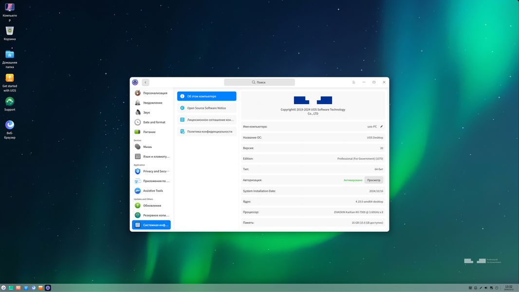 UOS — операционная система на базе дистрибутива Deepin, основанного на Debian, разработанная компанией UnionTech по заказу правительства КНР для замещения иностранных операционных систем. Есть варианты для настольных и для серверных систем, первые версии вышли еще в 2019 году. UOS также ориентирована на китайский рынок и предназначена для замены Microsoft Windows, поддерживает аппаратные платформы Zhaoxin, Loongson, Sunway, а также процессоры на базе архитектуры ARM. Есть и версия x86-64, которая как раз и установлена на тестовую систему.