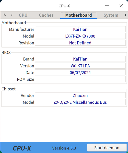 К сожалению, применяемая системная плата KaiTian LXKT-ZX-KX7000 имеет очень скудные возможности по настройке в BIOS Setup, никакого разгона и изменения важных для производительности параметров среди них нет, так что даже заходить в настройки особого смысла не имеет. Разве что основные данные о конфигурации ПК из них получить можно, да и то в очень кратком виде. Особенно нам бы помогла настройка частоты работы и таймингов DDR4-памяти, но ее в меню не оказалось, как и многих других привычных по решениям AMD и Intel параметров.